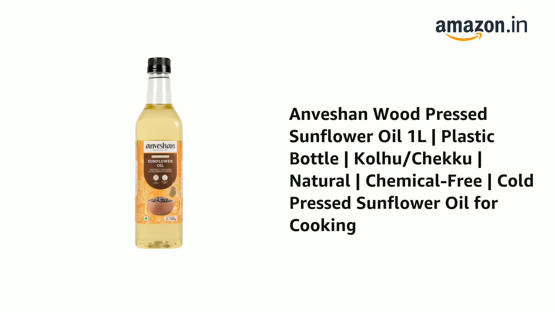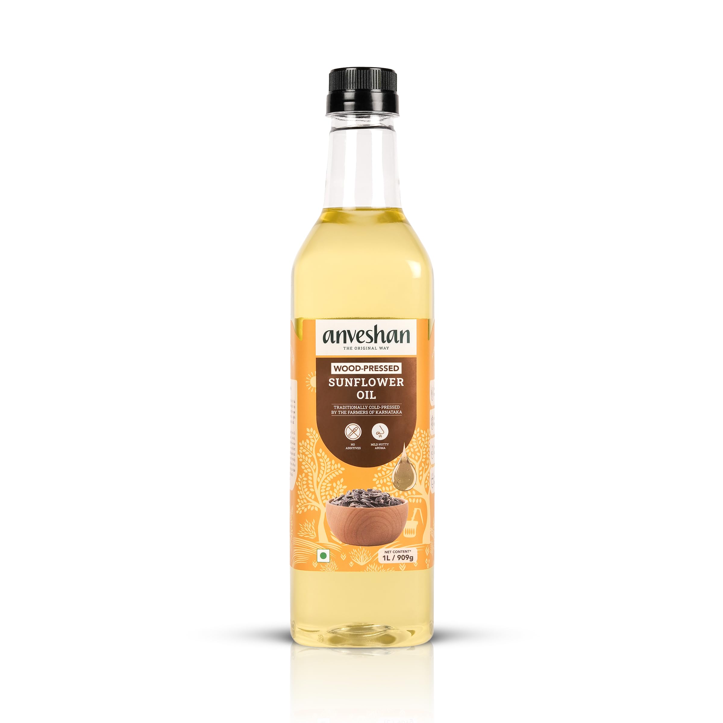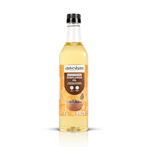 Anveshan Wood Pressed Sunflower Oil 1L | Plastic Bottle | Kolhu/Chekku | Extracted on Wooden Churner | Natural | Chemical-Free | Cold Pressed Sunflower Oil for Cooking