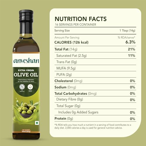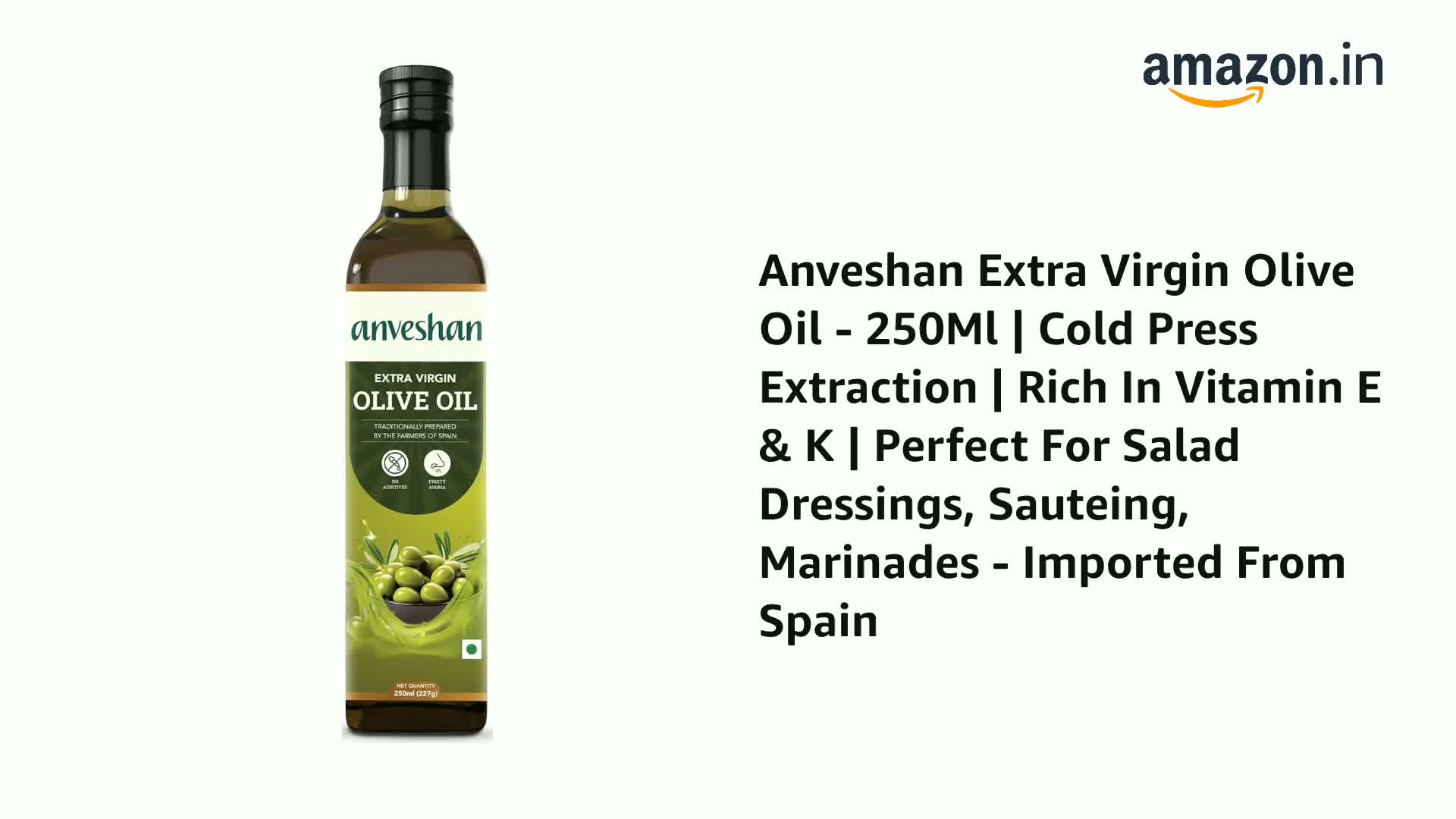 Anveshan Extra Virgin Olive Oil - 250Ml | Cold Press Extraction | Rich In Vitamin E & K | Perfect For Salad Dressings, Sauteing, Marinades - Imported From Spain
