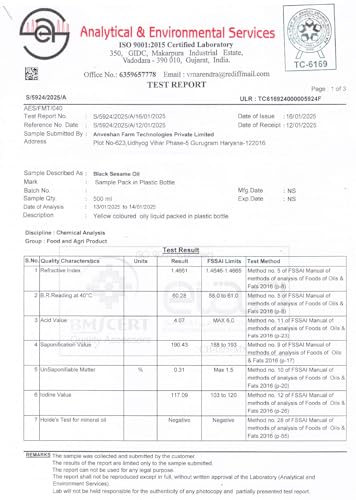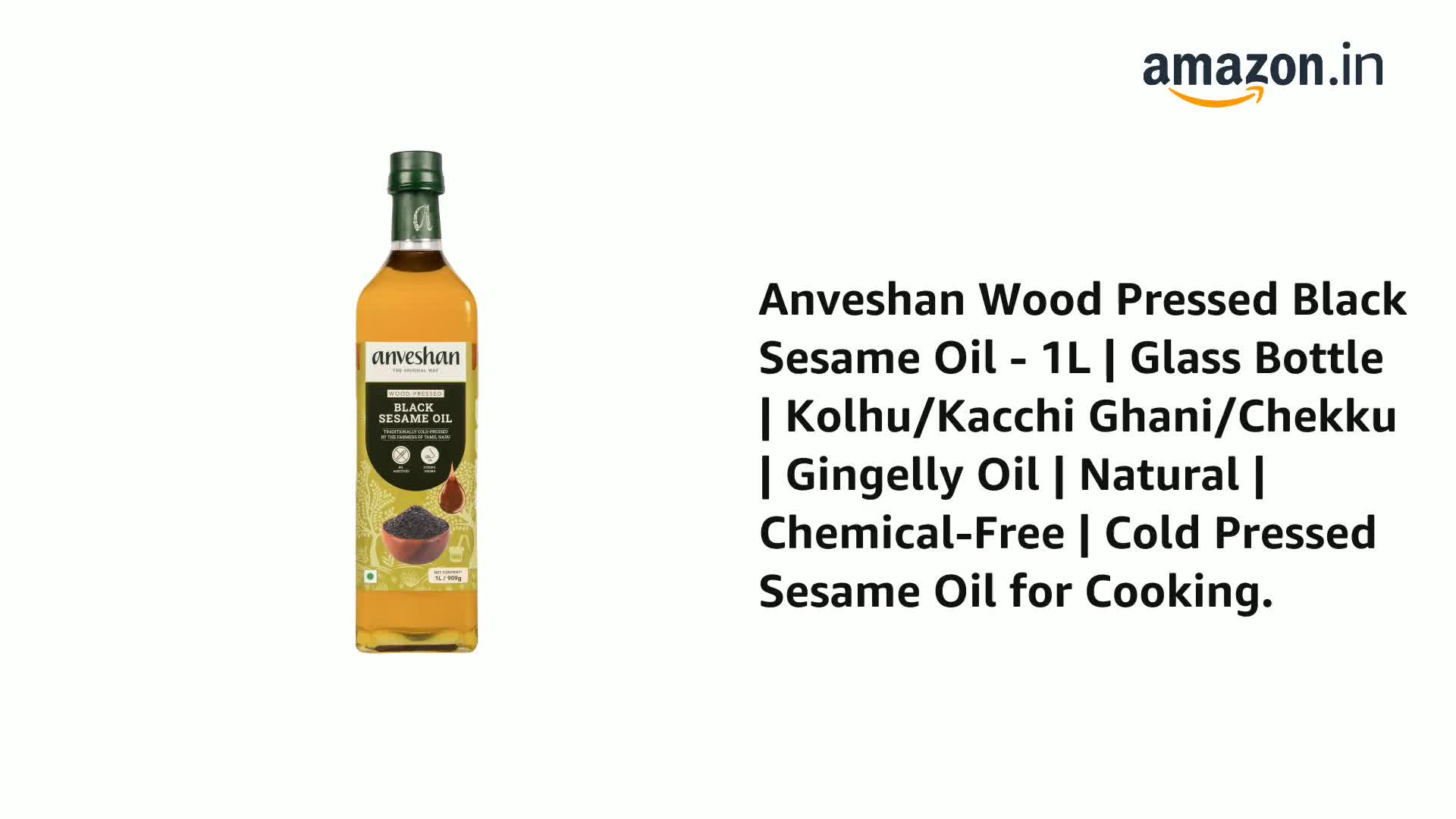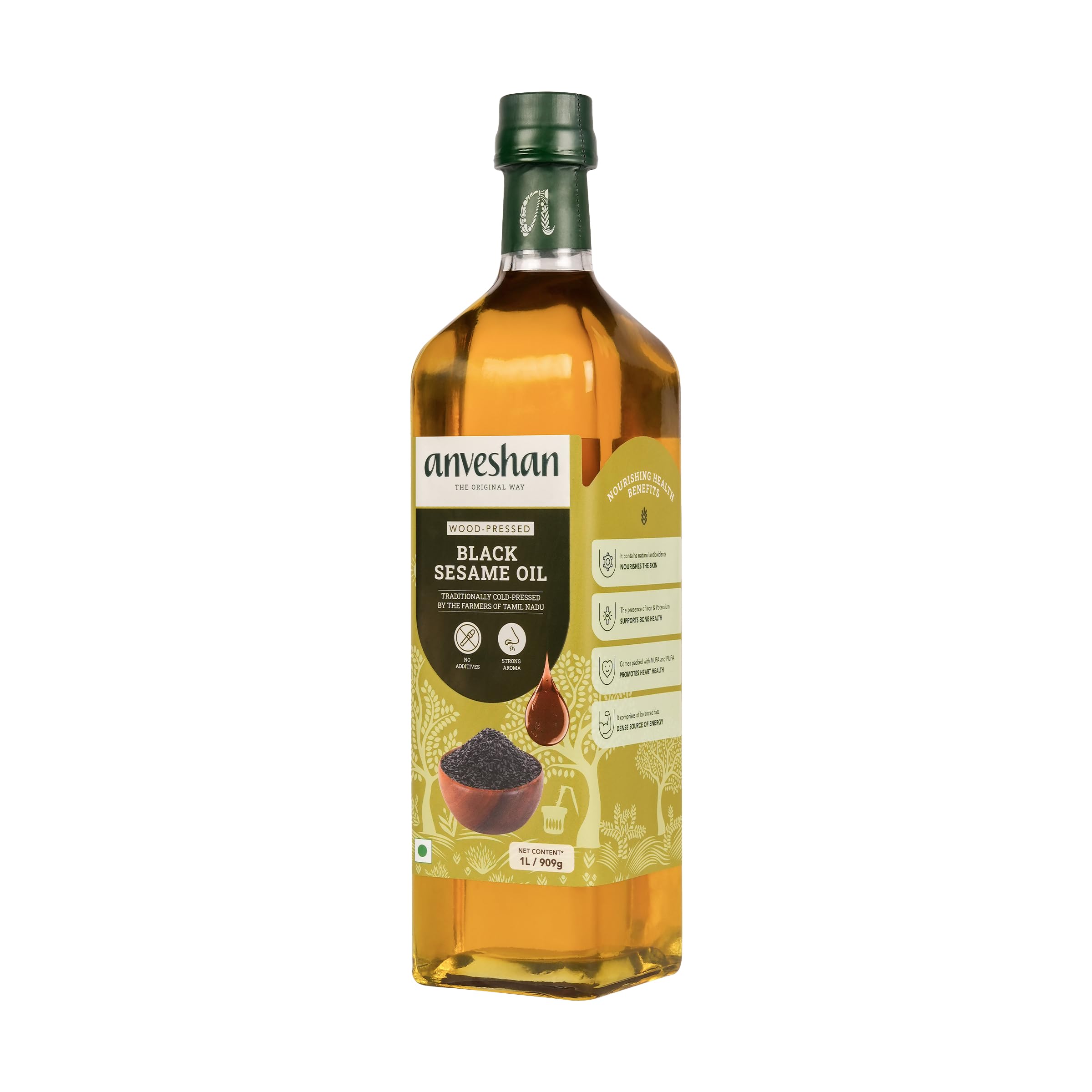 Anveshan Wood Pressed Black Sesame Oil - 1L | Glass Bottle | Kolhu/Kacchi Ghani/Chekku | Gingelly Oil | Natural | Chemical-Free | Cold Pressed Sesame Oil for Cooking.