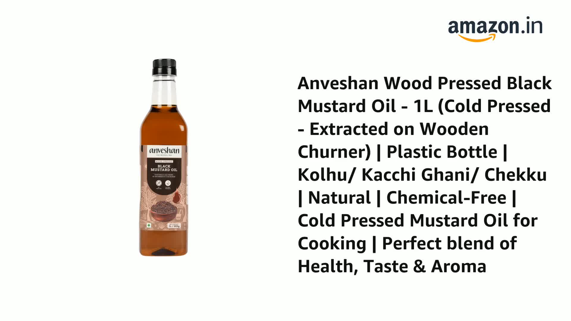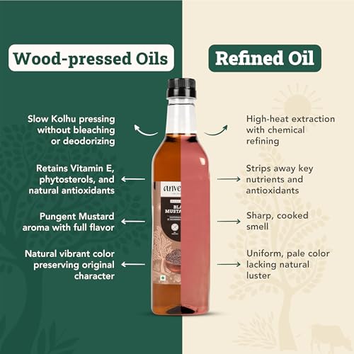 Anveshan Wood Pressed Black Mustard Oil - 1L (Cold Pressed - Extracted on Wooden Churner) | Plastic Bottle | Kolhu/ Kacchi Ghani/ Chekku | Natural | Chemical-Free | Cold Pressed Mustard Oil for Cooking | Perfect blend of Health, Taste & Aroma