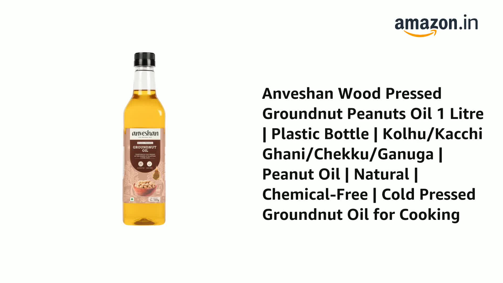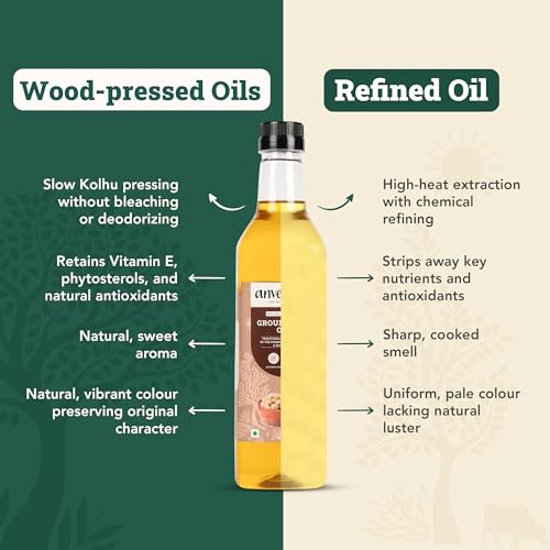 Anveshan Wood Pressed Groundnut Peanuts Oil 1 Litre | Plastic Bottle | Kolhu/Kacchi Ghani/Chekku/Ganuga | Peanut Oil | Natural | Chemical-Free | Cold Pressed Groundnut Oil for Cooking