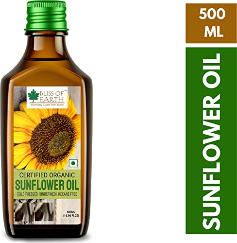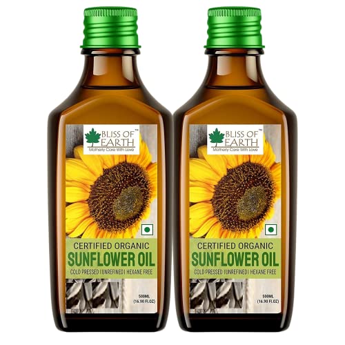 Bliss of Earth 2x500ML Certified Organic Sunflower Oil For Cooking, Cold Pressed, Hexane Free pet bottle (Pack of 2)