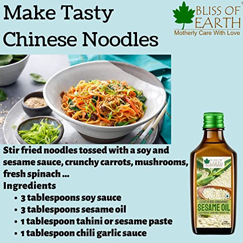 Bliss of Earth Organic Mustard Oil is extracted by cold pressing of sunflower seeds without using hexane. It is a good source of vitamin K and Omega 3 & 6. It also has high levels of both alpha-linolenic acid and erucic acid. Mustard oil demonstrates strong anti-microbial property and is anti-inflammatory in nature. Most valuable health benefit of Mustard oil can be attributed to its strong stimulant property. It helps improves circulation boosts metabolism relieves sinus congestion and most importantly invigorates digestion Organic Sesame Oil is extracted by cold pressing of white sesame seeds without using hexane. Sesame seeds are rich sources of protein vitamins and antioxidants. It has an ability to generate heat and energy in the body and its numerous beauty and hair benefits sesame seeds are loaded with nutrition that makes it a must-have in your winter diet.
