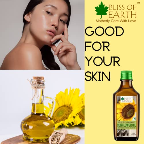 Bliss of Earth 500ML Certified Organic Sunflower Oil for Cooking Cold Pressed Hexane Free
