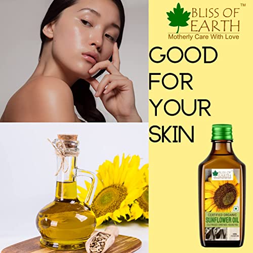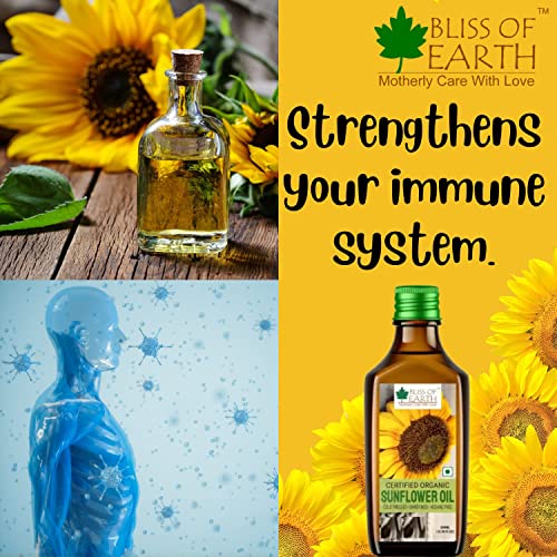 Bliss of Earth Organic Mustard Oil is extracted by cold pressing of sunflower seeds without using hexane. It is a good source of vitamin K and Omega 3 & 6. It also has high levels of both alpha-linolenic acid and erucic acid. Mustard oil demonstrates strong anti-microbial property and is anti-inflammatory in nature. Most valuable health benefit of Mustard oil can be attributed to its strong stimulant property. It helps improves circulation boosts metabolism relieves sinus congestion and most importantly invigorates digestionOrganic Sunflower Oil is extracted by cold pressing of sunflower seeds without using hexane. It is rich in nutrients vitamins and poly-unsaturated fats. It is also effective in decreasing cholesterol and good for hormonal activities. Golden light and healthy sunflower oil contains more Vitamin E and Omega 6 Fats than any other vegetable oil. It also contains linoleic acid an essential fatty acid and oleic acid. While linoleic acid is a polyunsaturated fat oleic acid is a monounsaturated fat.