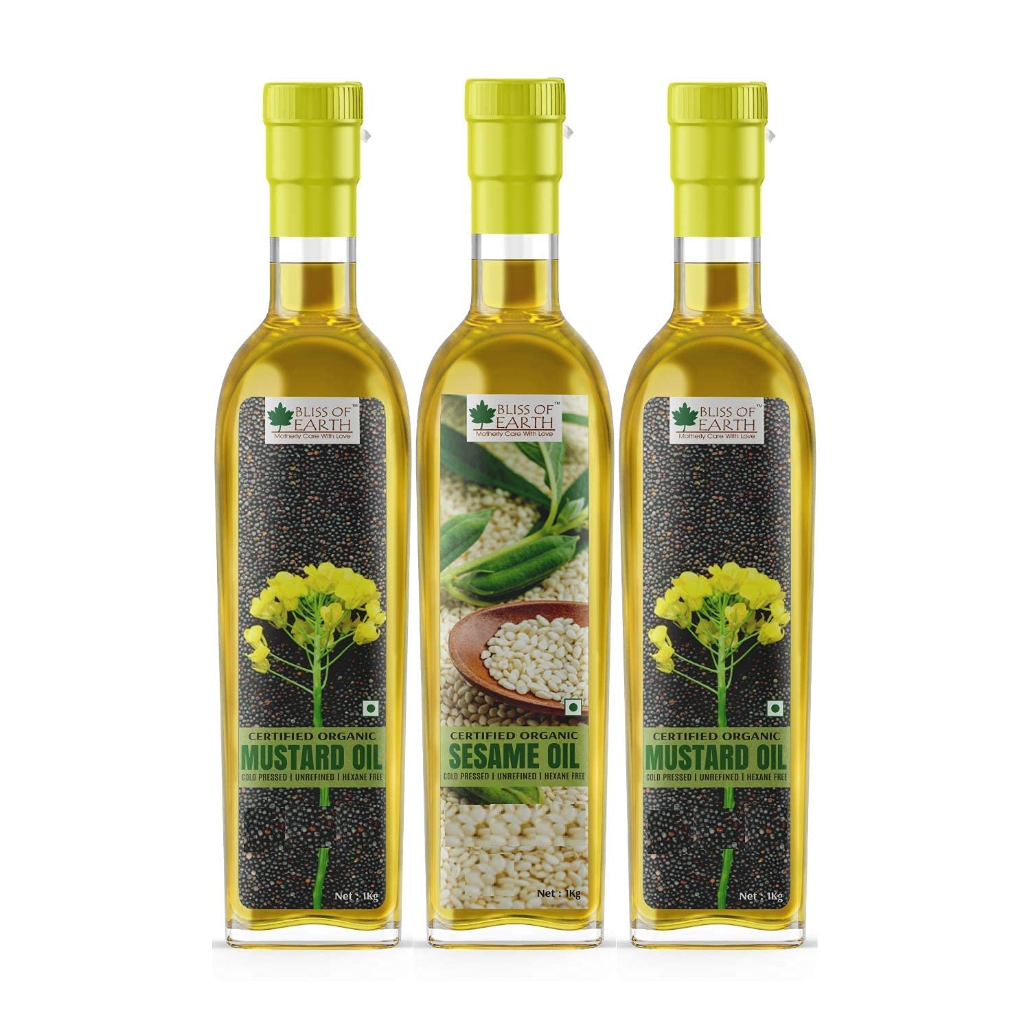 Bliss of Earth Combo Of Organic Mustard Oil (2x1 ltr) And Sesame Oil 1 Ltr Cold Pressed For Cooking Pack Of 3