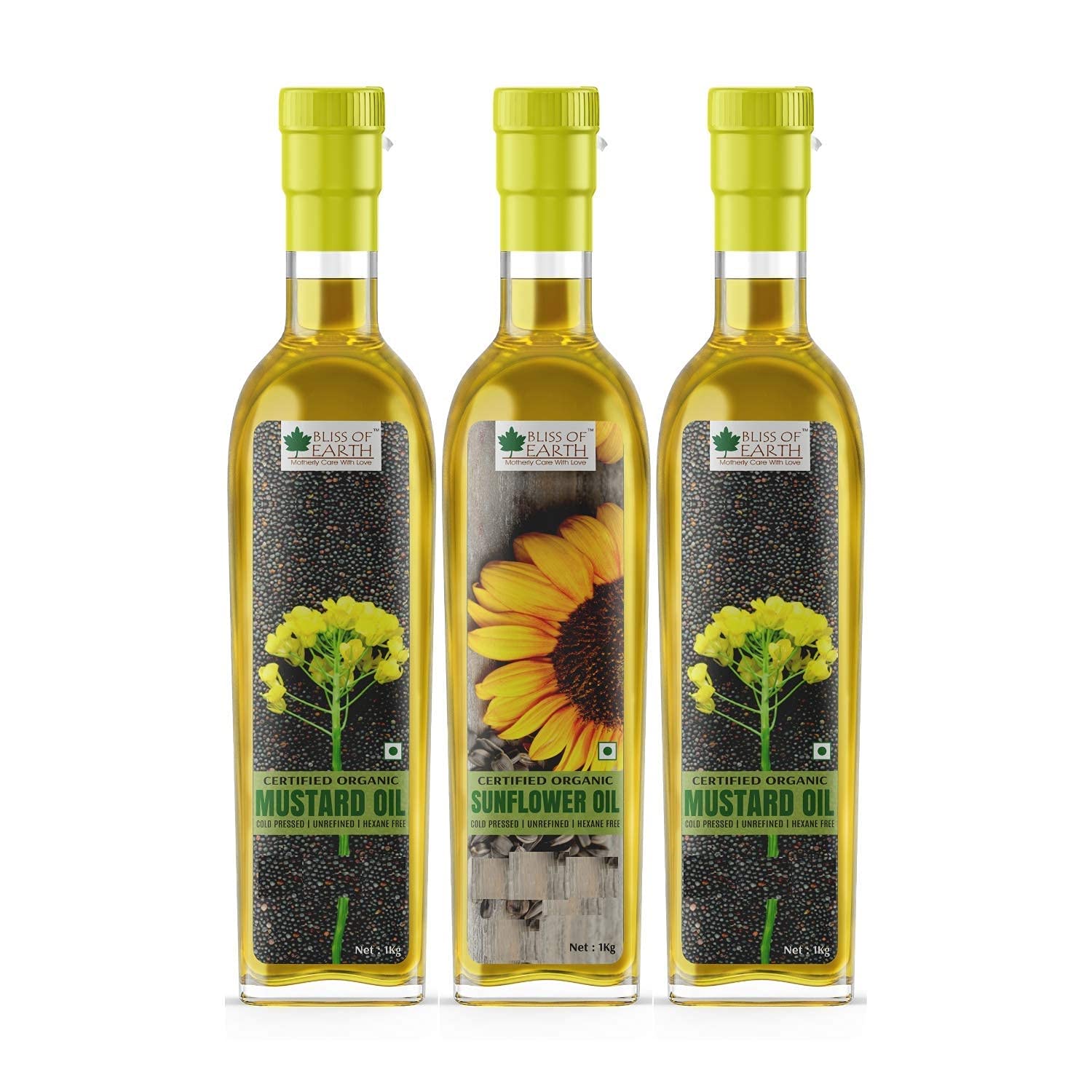 Bliss of Earth Combo Of Organic Mustard Oil (2x1 ltr) And Sunflower Oil 1 Ltr Cold Pressed For Cooking Pack Of 3