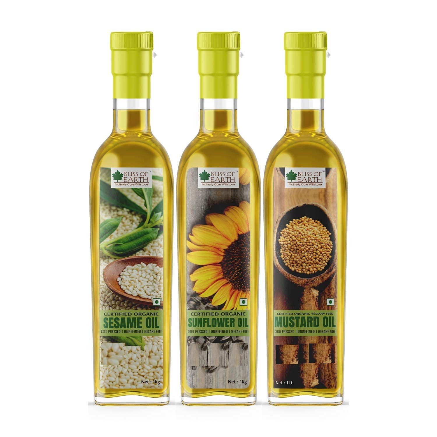 Bliss of Earth Combo Of Organic Yellow Mustard Oil, Sunflower Oil And Sesame Oil Cold Pressed For Cooking (1 Ltr Each) Pack Of 3