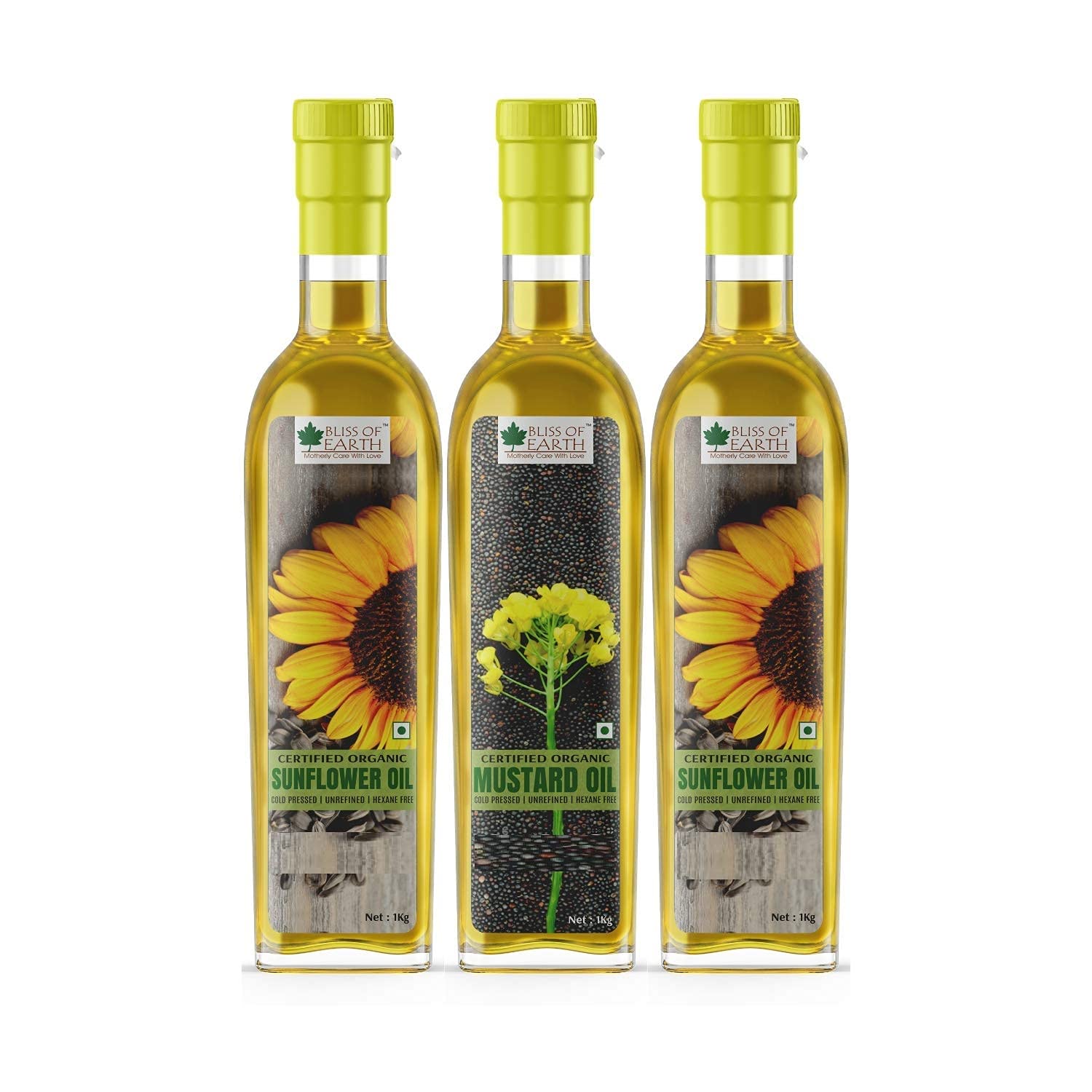 Bliss of Earth Combo Pack Of Organic Mustard Oil (1 ltr) And Sunflower Oil (2x1 Ltr) Cold Pressed For Cooking Pack Of 3