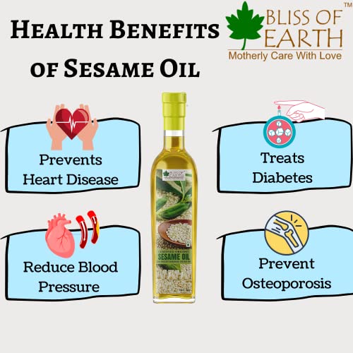 Bliss of Earth Organic White Sesame Oil 2x1 Ltr For Massage, Cooking & Eating, Cold Pressed & Hexane Free