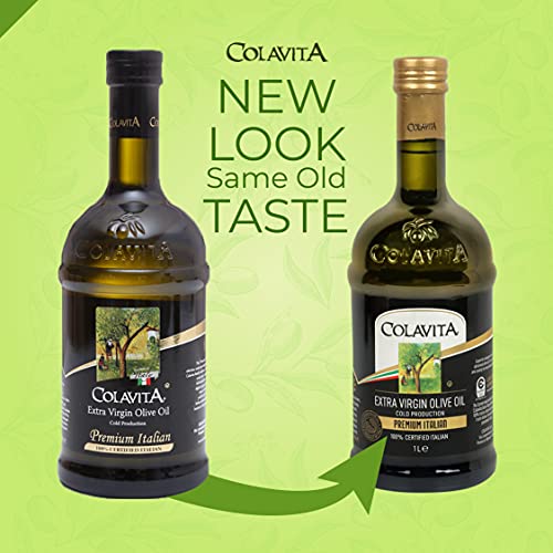 Colavita Extra Virgin Olive Oil (1L) | MATURE ITALIAN (less than 12 months old) | Cold Pressed Oil from Italian grown Olives | Premium Olive Oil for Cooking Dips and Marinades | Timeless Bottle Pack