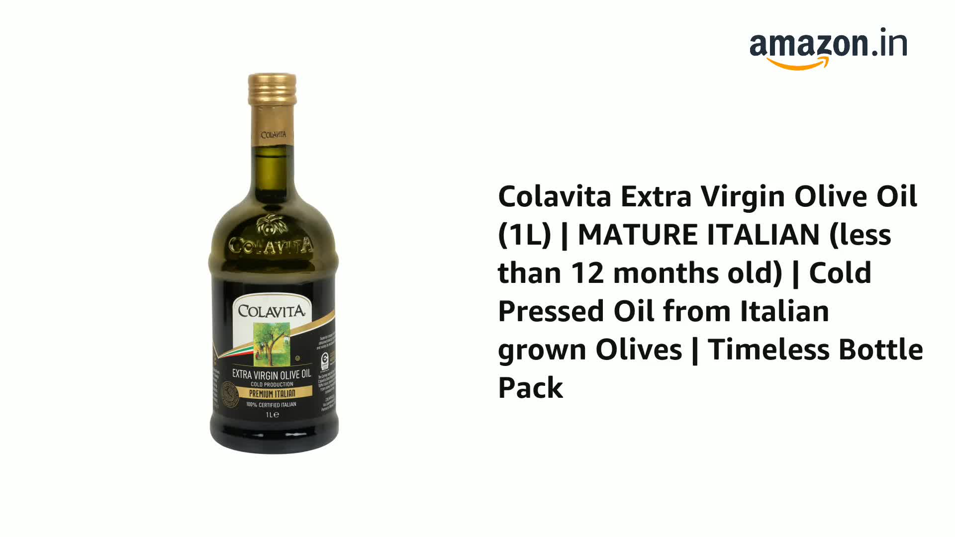 Colavita Extra Virgin Olive Oil (1L) | MATURE ITALIAN (less than 12 months old) | Cold Pressed Oil from Italian grown Olives | Timeless Bottle Pack