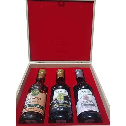 3 flavoured extra virgin olive oil: pepperolio garlicolio & Extra Virgin Olive oil- an infusion of fragrant garlic essence provides a boldly flavourful note to Colavita extra virgin olive oil. Perfect as an enticing dipping sauce for bread Colavita garlicolio also complements meat vegetable potato pasta and risotto dishes. Cold pressed using olives grown and harvested exclusively from the finest groves throughout Europe before blending with essence of garlic cholesterol and carbohydrate free product perfect as an enticing dipping sauce for bread and serves as an excellent complement to meat vegetable potato pasta and risotto dishes store in a cool dry place out of direct light imported from Italy Colavita pepperolio is a flavoured extra virgin olive oil infused with red chili peppers. Colavita extra virgin olive oil takes on a fiery flavour. Pepperolio imparts bold spicy flair to marinades soups and recipes that call for sautéing or grilling.