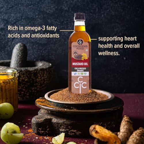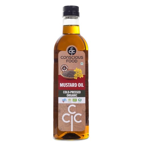 Conscious Food Organic Cold Pressed Black Mustard Oil in PET bottle | 500ml | Mustard Oil for Cooking | Certified Organic | Good for heart health | Kachi Ghani