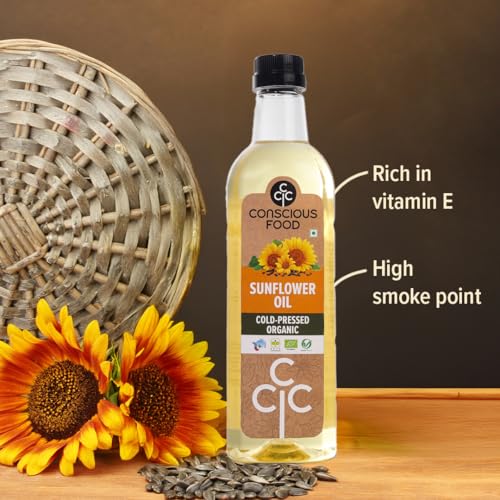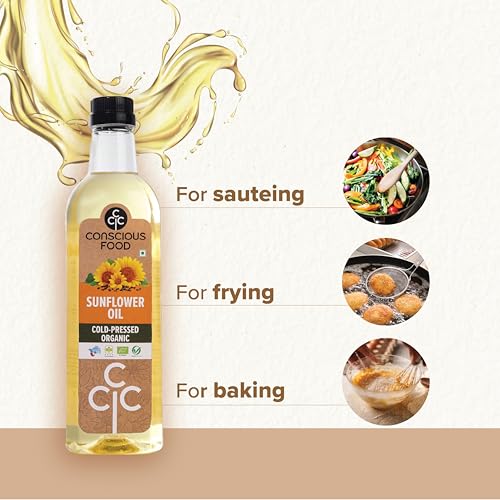Conscious Food Cold Pressed Sunflower Oil | 1 litre | Certified Organic | PET Bottle | Cooking Oil | High in Antioxidants, Delicious & Healthy