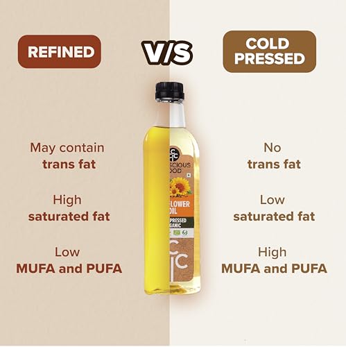 • ABOUT: Sunflower oil is organic certified as well as cold pressed. Starting from seed to its final product everything is organically sourced manufactured and packed as per the standards. This product is considered an ‘essential' culinary oil in your kit