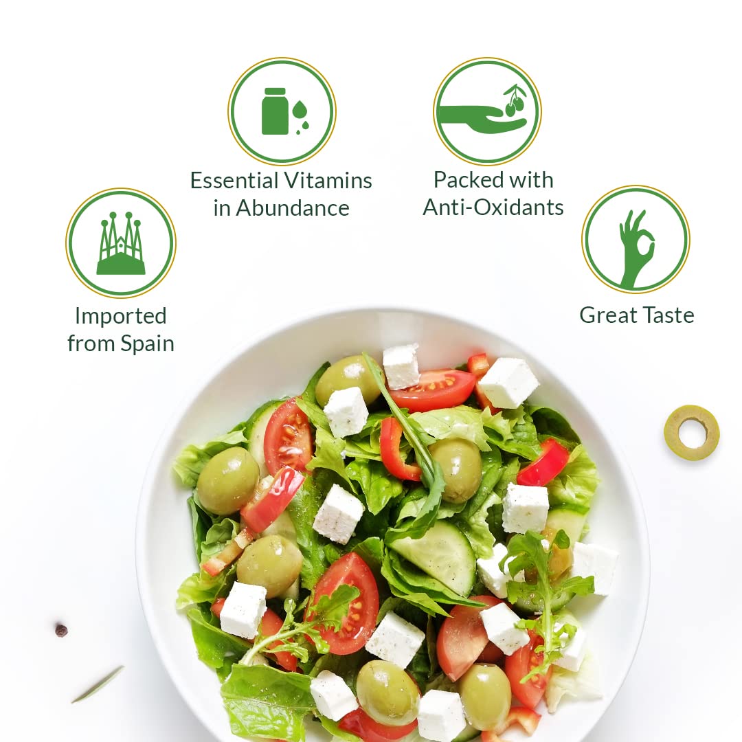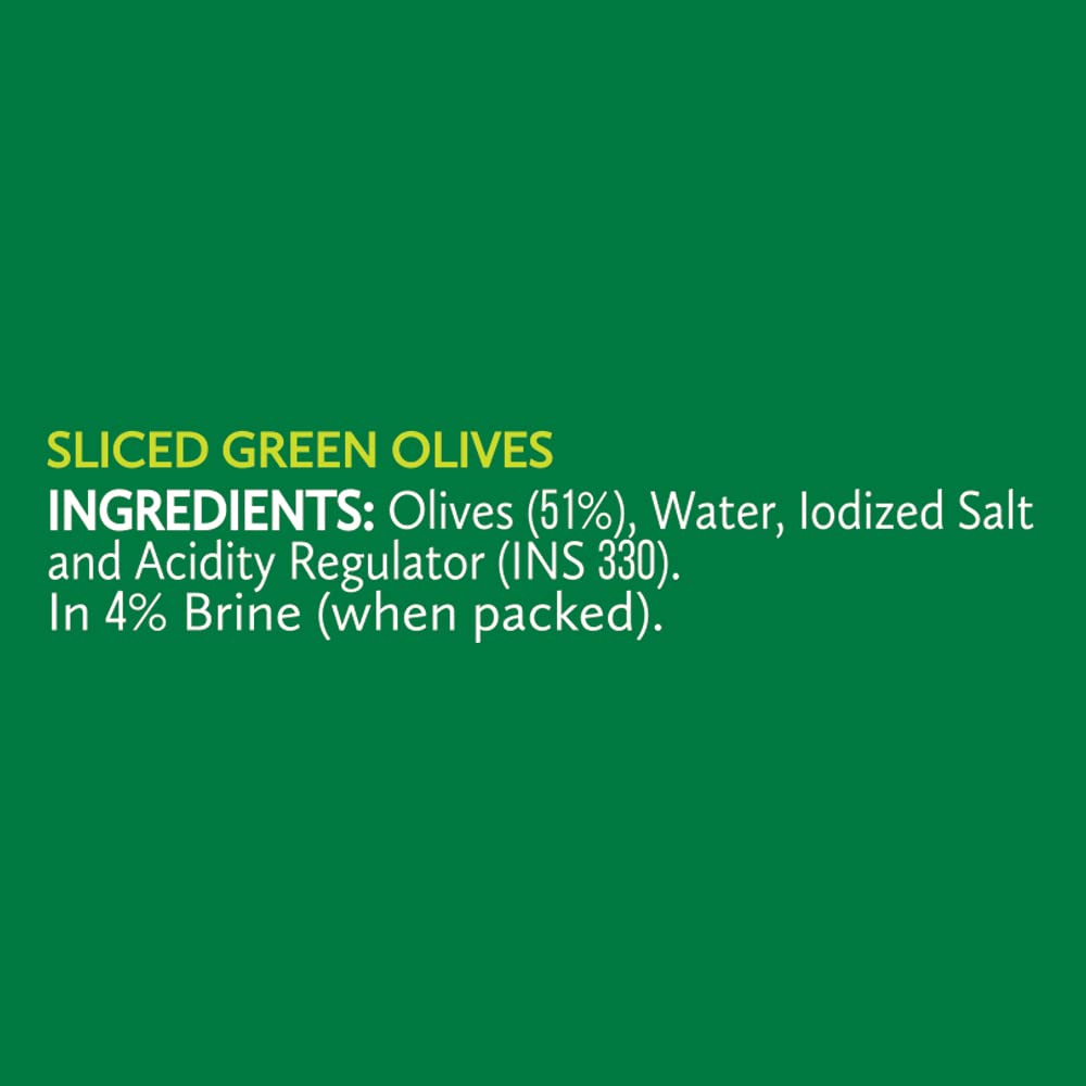 Del Monte Green Sliced Olives 235g l Imported from Spain | Low Fat Ready-to-Eat Healthy Snack l 100% Natural and Cold Extracted | Enjoy as toppings or in Continental cuisines