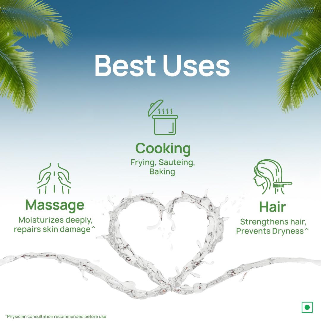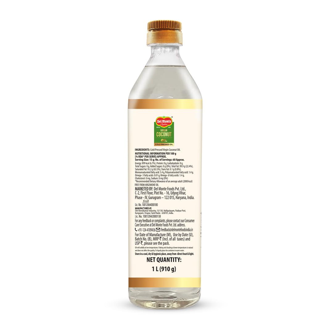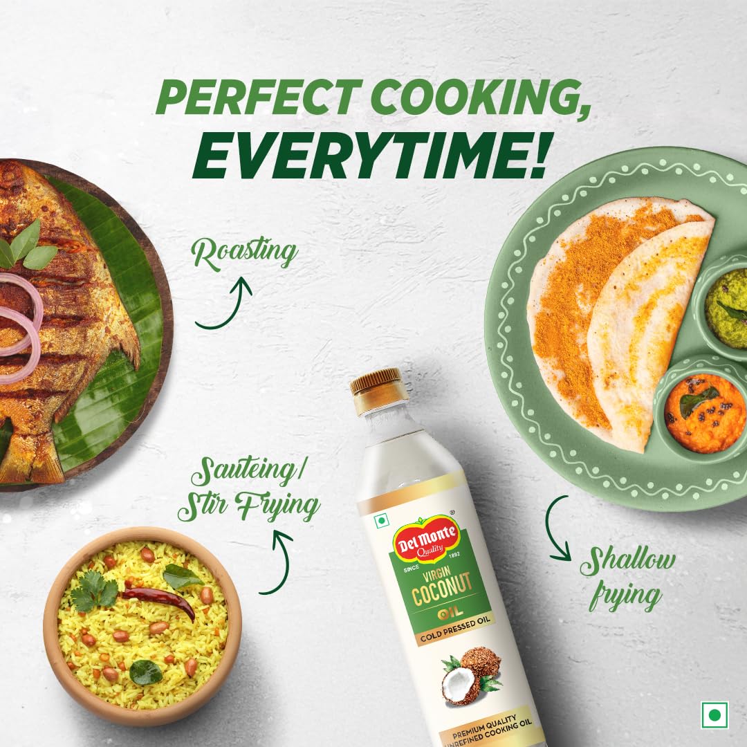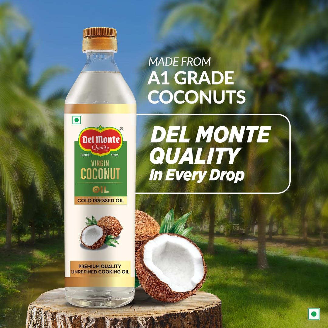Del Monte Virgin Coconut Oil is 100% pure and unrefined. It is made using A1 grade coconuts found in the southern parts of India. This oil is extracted using the cold pressed method at 35°C that helps preserve the essential nutrients and naturally occurring antioxidants found in the oil. Thus making it a perfect choice for both cooking and cosmetic purposes.