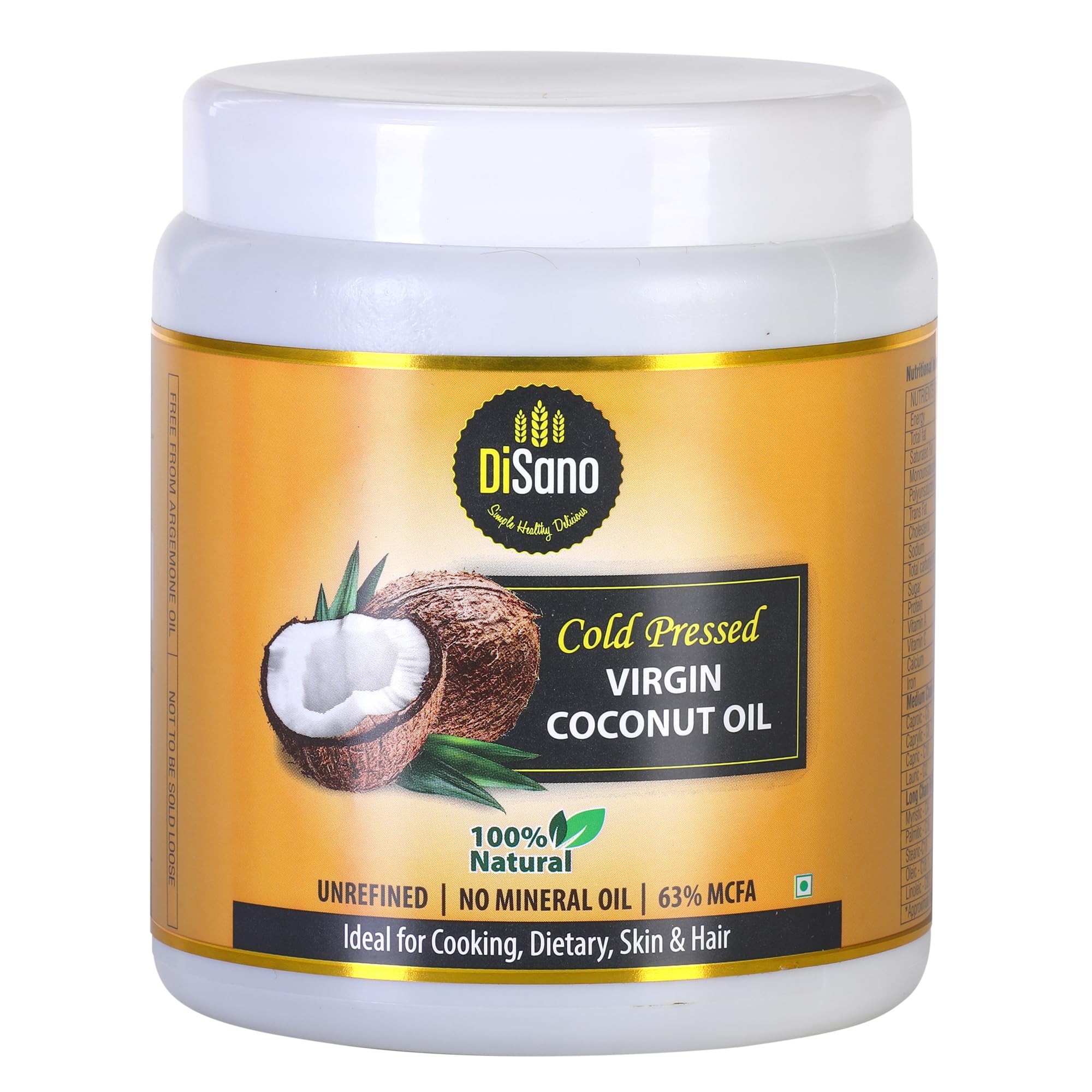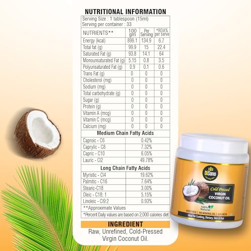 Disano cold press virgin coconut oil wide mouth jar 500ml come with chemical & heat-free extraction i retains all vital nutrients natural rich aroma & taste of oil.