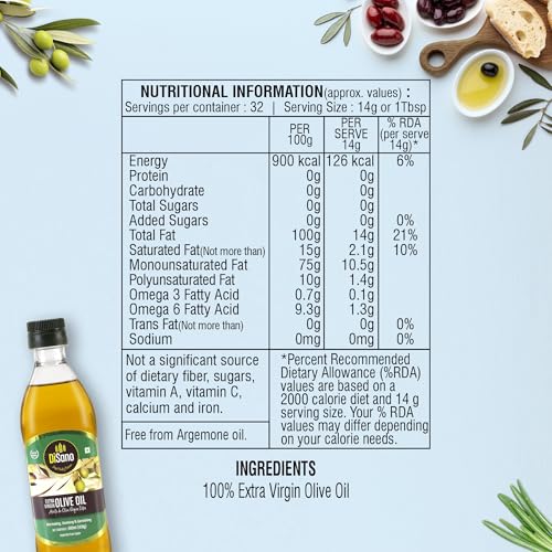 DiSano Extra Virgin Olive Oil 500ml, Cold Pressed, First Extraction, Ideal for Sauteing, Grilling & Dressing