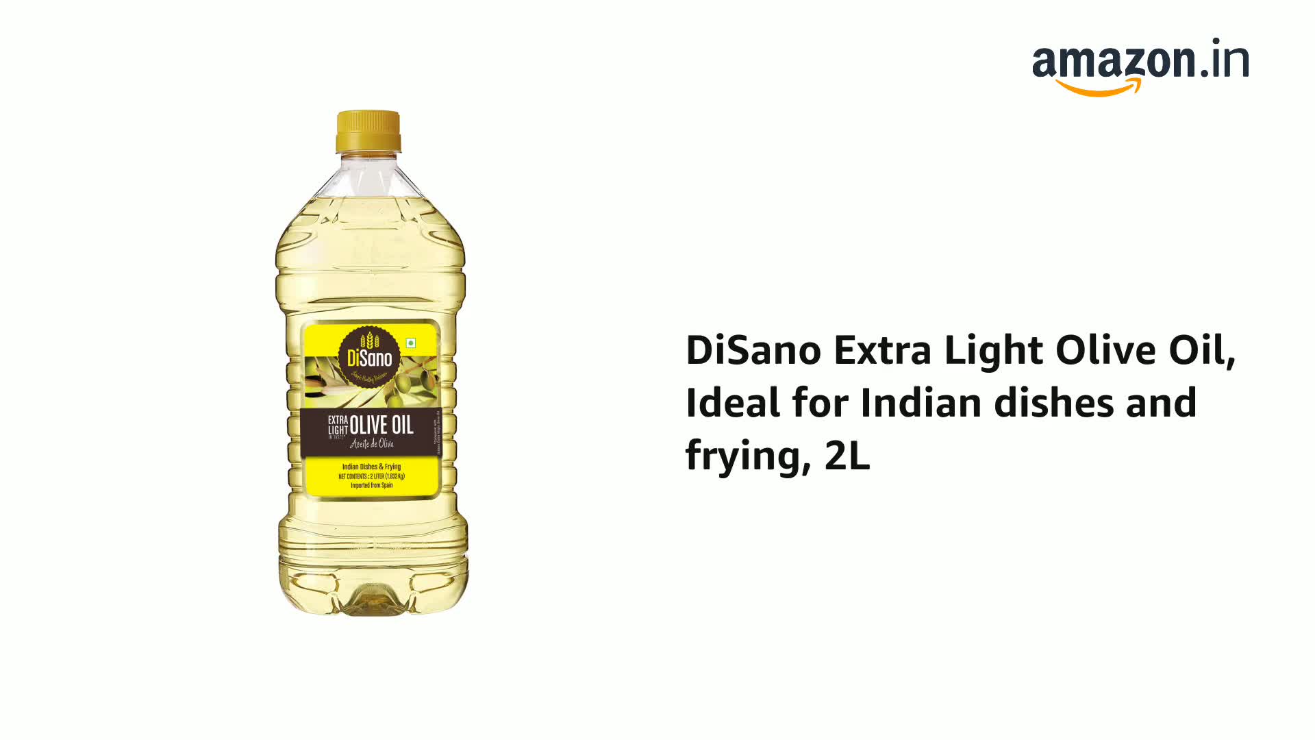 Size:2 LitreDisano Extra Light Olive Oil is obtained from carefully selected high quality Olives. It has Extra Light taste and aroma hence is ideal for all Indian cooking specially for frying (Roasting ) Saut©ing and Grilling.Extra light flavour of Olives does not change the Original taste of Daily Indian cooking. It has a high smoking point which makes it ideal for deep frying. It gets absorbed less in food ensuring low intake of Oil Hence can be used to prepare all type of cuisine.
