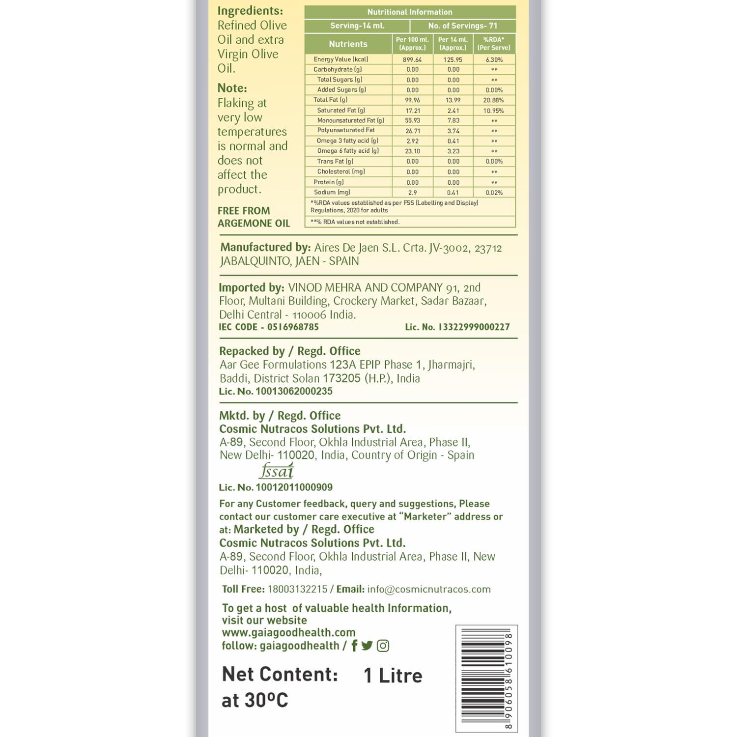 HomeGroceryCookingCold Pressed OilsGaia Extra Light Olive Oil (1L Bottle Pack) Incredibly Healthy with Zero Cholesterol and Low Saturated Fat Good for Frying Roasting Baking and All Indian Cuisine