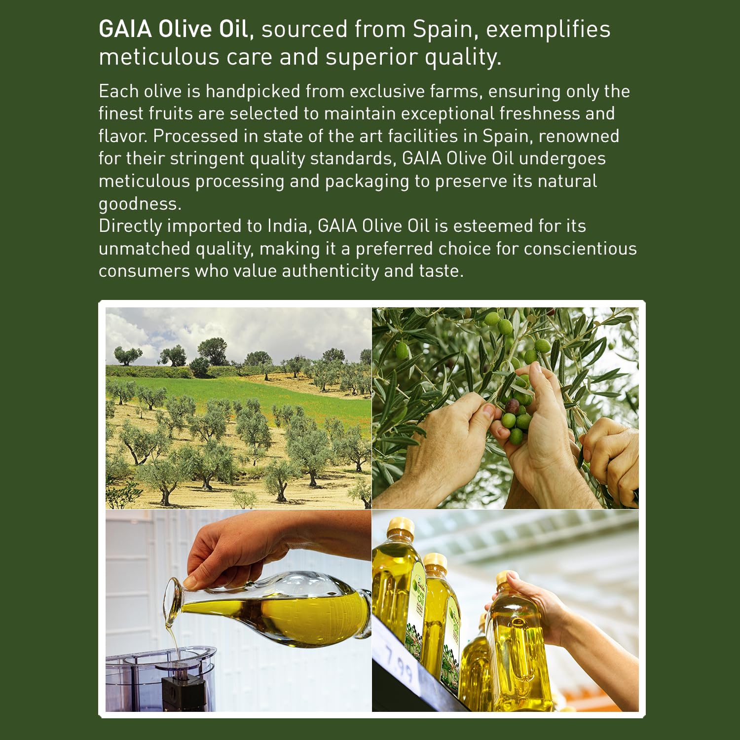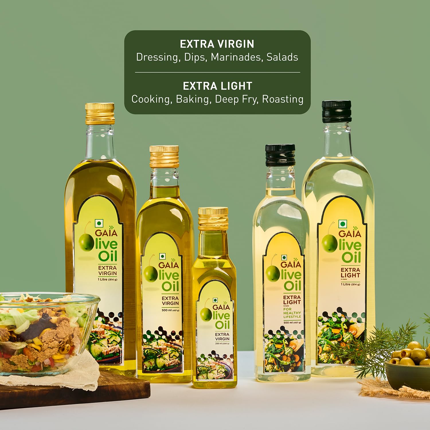 Gaia Extra Light Olive Oil (1L Bottle Pack) Incredibly Healthy with Zero Cholesterol and Low Saturated Fat Good for Frying Roasting Baking and All Indian Cuisine