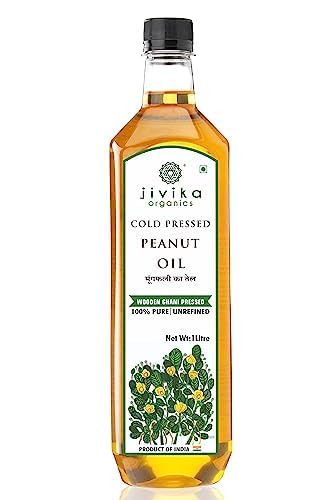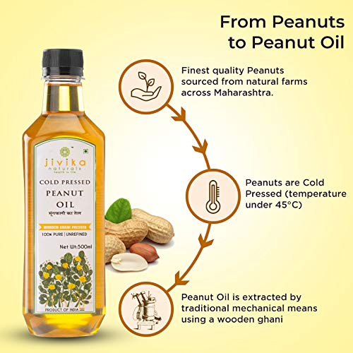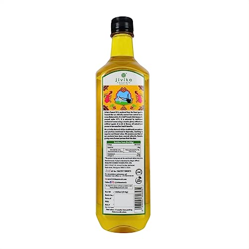 Jivika Cold Pressed Peanut Oil 1 Litre | Unrefined | Kolhu/Kacchi Ghani/Chekku | Natural | Chemical-Free | Cold Pressed Groundnut Oil for Cooking