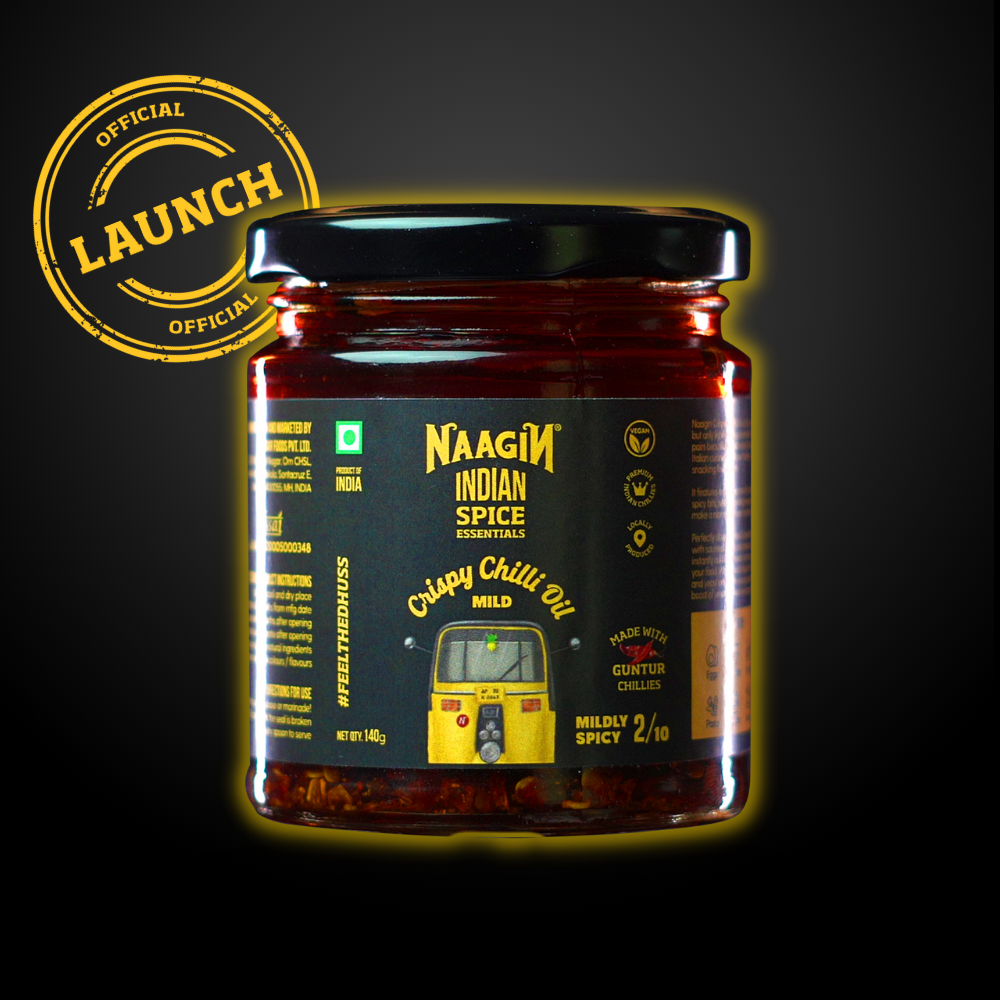 NAAGIN Indian Pantry Essentials - Crispy Chilli Oil | Made with real Guntur Chillies | Mildly Spicy - 2/10 heat level | Vegan | Dip Cook Marinate| No artificial colours & flavor | Perfect for Stir-Fries Momos Noodles Pizzas and Salad | Proudly Made in India (140g)