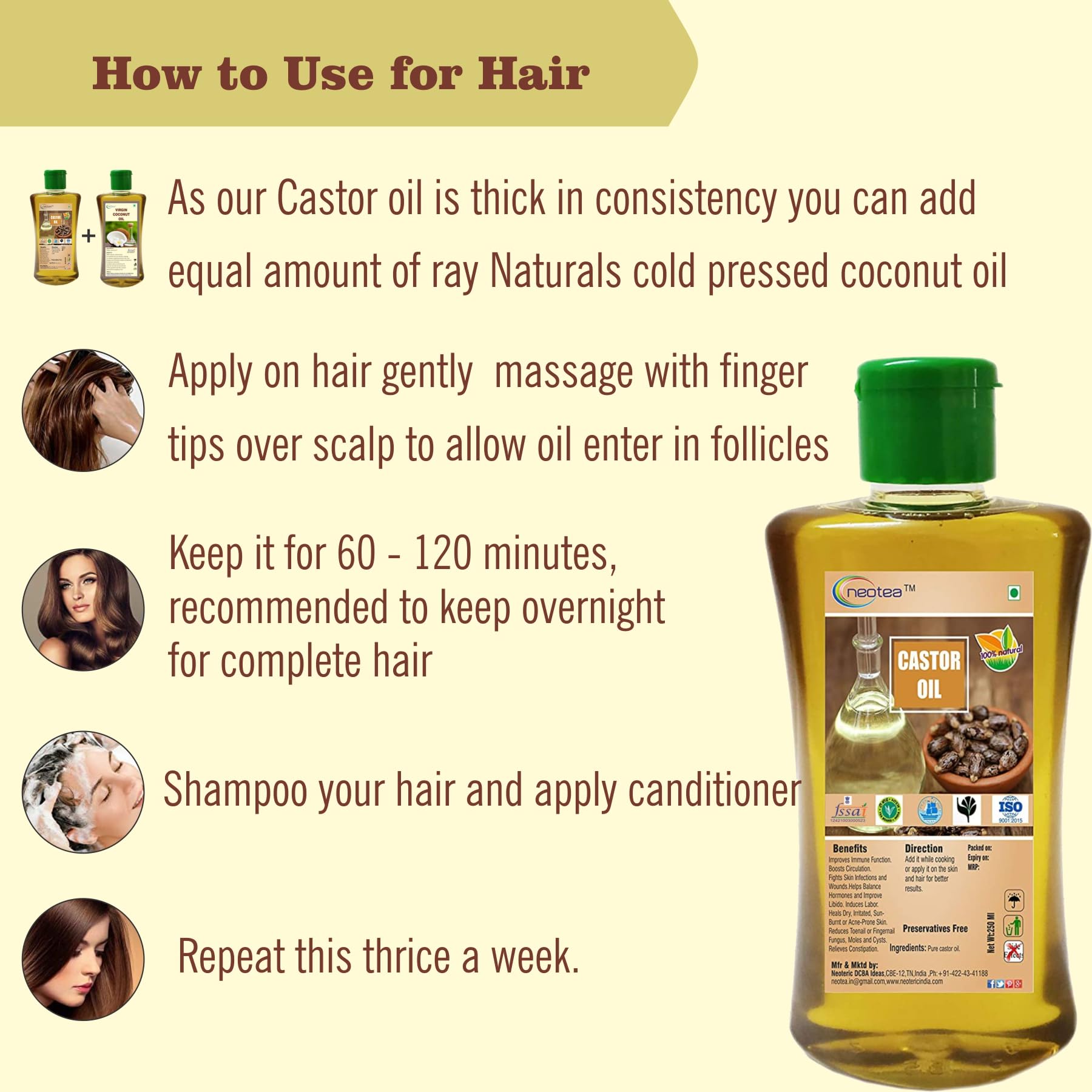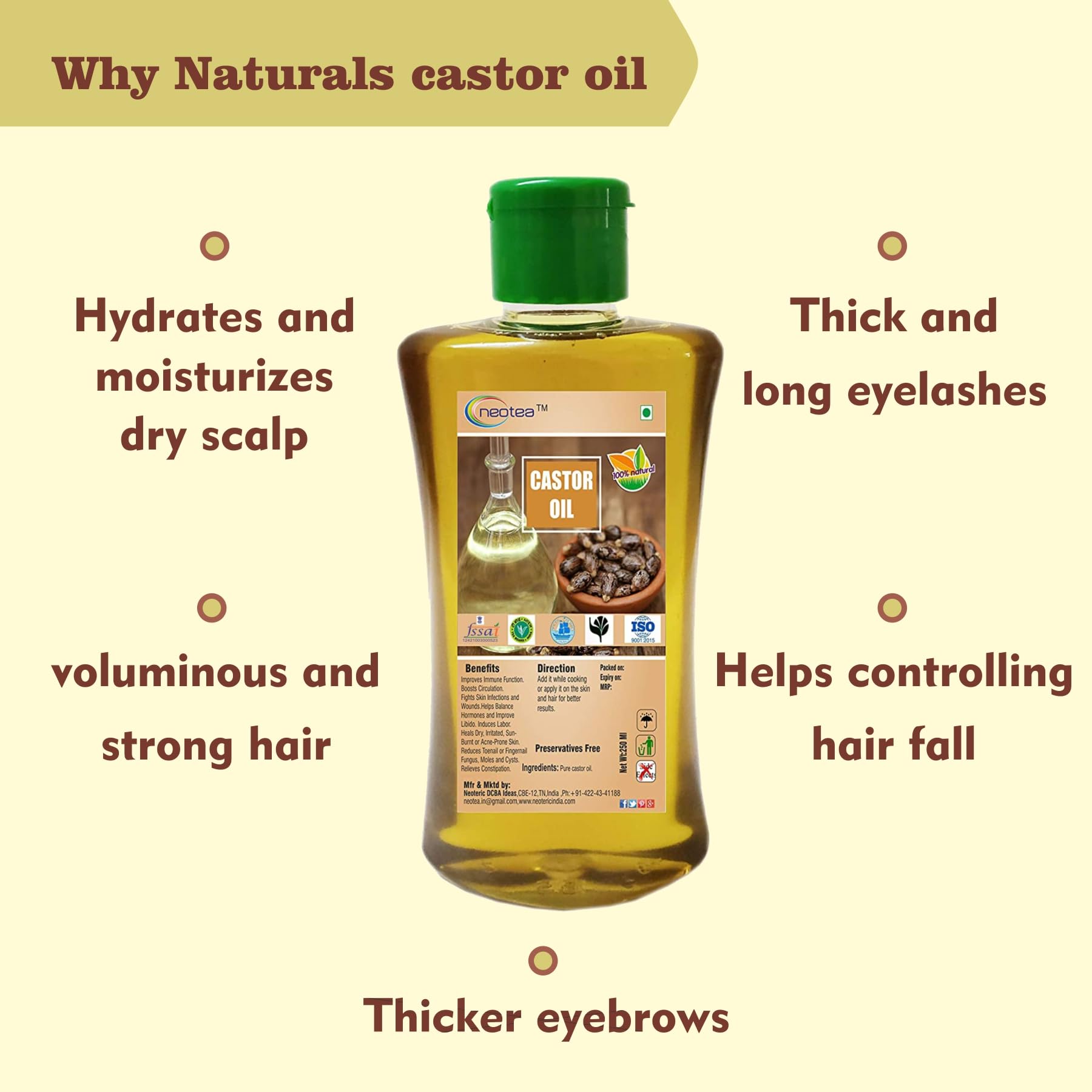 Why Choose Neotea Castor Oil? 100% pure natural and cold-pressed for maximum effectiveness Rich in essential nutrients vitamins and fatty acids Promotes hair growth strengthens hair and improves scalp health Enhances eyebrows and eyelashes giving them a fuller healthier look Deeply moisturizes skin leaving it soft hydrated and smooth Free from chemicals and additives gentle on all skin types Multi-purpose oil ideal for hair skin and beauty care How to Use For Hair: Massage a small amount into your scalp and hair leave for 30 minutes to an hour then wash with shampoo to reveal healthier shinier hair. For Eyebrows & Eyelashes: Apply a thin layer to your eyebrows and eyelashes using a clean applicator before bed. For Skin: Apply directly to dry areas of your skin to hydrate and soften or use on your face to reduce fine lines and improve skin elasticity. For Scalp: Gently massage into your scalp to promote scalp health and reduce dryness or irritation.