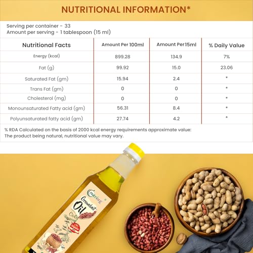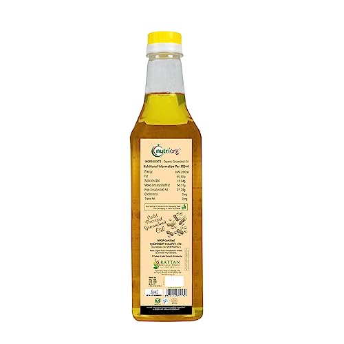 Nutriorg Cold Pressed 100% Organic Groundnut Oil 500 ml | Essential Cooking Purpose | MUFA & PUFA Rich | Vitamin has beed delivered promptly. Item found to be of very good quality