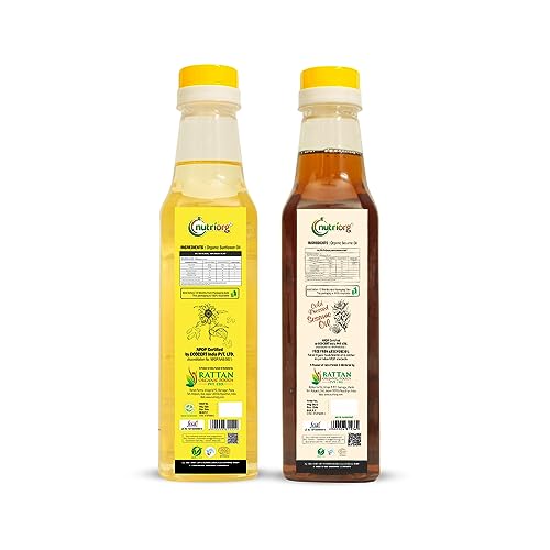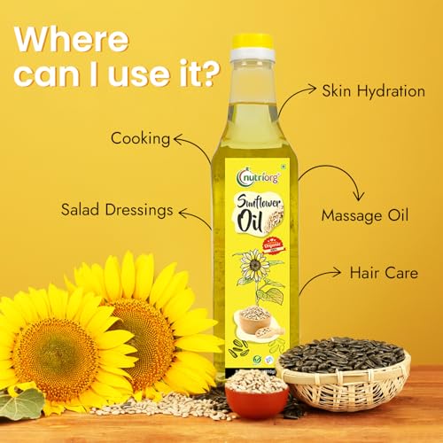 Nutriorg Cold Pressed Organic Sesame Oil & Sunflower Oil 1000 ml (Pack of 2 * 500 ml) | Essential Cooking Purpose | Rich Vitamin E | Hair & Skin Care