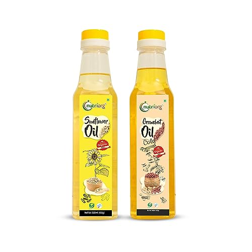 Nutriorg Cold Pressed Organic Sunflower Oil & Groundnut Oil 1000 ml (Pack of 2 * 500 ml) | Essential Cooking Purpose | Vitamin E Rich