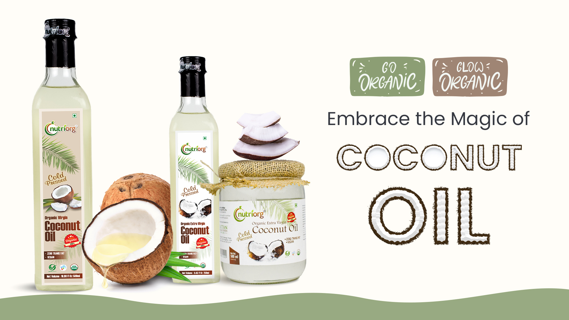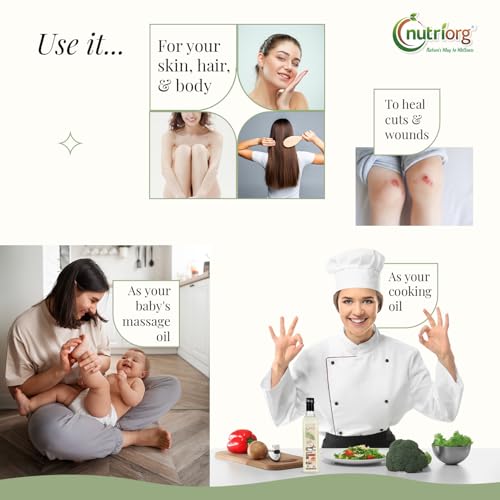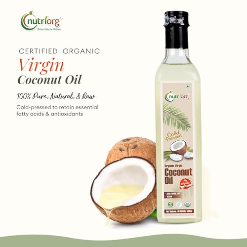 Nutriorg Cold Pressed Virgin Coconut Oil 500 ml | 100% Pure & Organic | For Cooking, Skin & Hair | Rich Tropical Aroma | Multi-Purpose Use | Non-GMO
