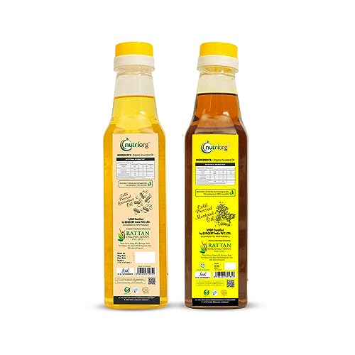 Nutriorg Organic Mustard & Groundnut Oil (Pack of 2 * 500 ml) | Cold Pressed | Wooden Pressed | Essential Cooking Purpose | Unrefined | Natural Filtration for Nutrients Retention| Hair & Skin Care