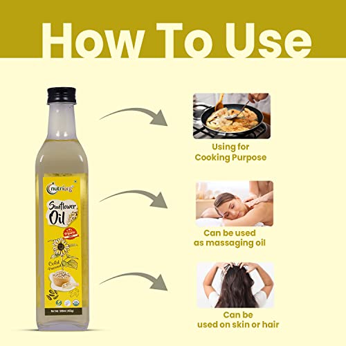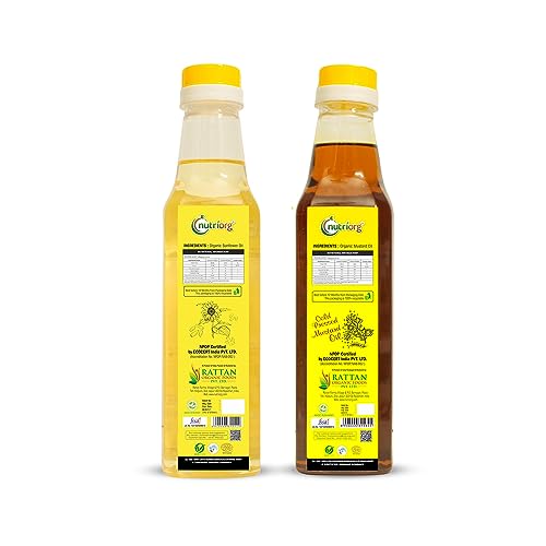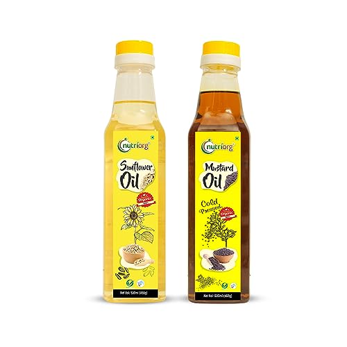 Nutriorg Organic Mustard & Sunflower Oil ( Pack of 2 * 500 ml) | Cold Pressed | Essential Cooking Purpose | Unrefined | Natural Filtration for Nutrients Retention | for Hair & Skin Purpose