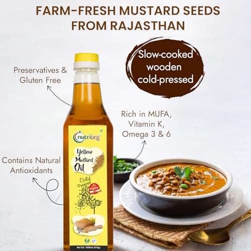 Nutriorg Organic Yellow Mustard Oil 500 ml | Cold Pressed | Essential Cooking Purpose | Unrefined | Natural Filtration for Nutrients Retention | for Hair & Skin Care