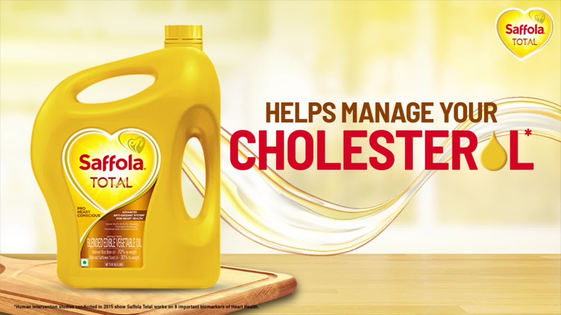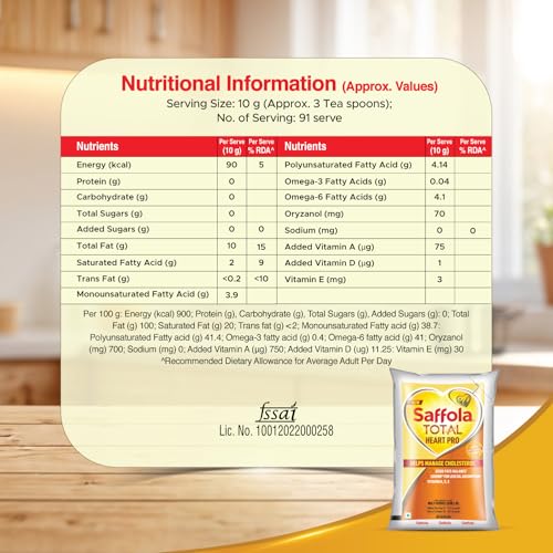 When your familys heart health is your priority we know that you go the extra mile to make them follow a heart-healthy lifestyle to keep them away from heart related signs like cholesterol. Making the right choices can go a long way in taking care of heart health & an important choice is the oil you use. The right cooking oil can work hard and give you the right benefits. Saffola Total multisource edible oil is clinically tested^ to take care of your heart in not just 1 but 8 ways. It helps manage your cholesterol*. Saffola Total multisource edible vegetable oil has advanced antioxidant system that helps improve immunity. Saffola Total has Oryzanol which helps maintain healthy cholesterol levels. Saffola Total cooking oil comes with LOSORB¢ technology which ensures that your food absorbs upto 31%** lesser oil. Choose Saffola Total an expert solution that helps you take care of your heart! *Human intervention studies conducted in 2015 show Saffola Total works on 8 biomarkers of Heart Health. ^Saffola Total works on 8 biomarkers of heart health based on published randomized double blind clinical study 2015 as approved by independent ethics committee. Saffola encourages you to use less oil exercise regularly and have a balanced lifestyle. **as compared to commonly consumed cooking oils; basis frying studies on potato 2018.