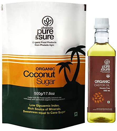 Pure & Sure Organic Coconut Sugar | Natural Sugar Unrefined & Wholesome | Cake Decorating Items Edible Topping 500gm.Made from the finest quality coconut flower nectar sourced from certified organic farms across India Phalada Pure and Sure Organic Coconut Sugar is an ideal sugar substitute for people with diabetes.Pure & Sure Organic Castor Oil 500ml | Hexane Free Castor Oil | Castor Oil Cold Pressed Edible | Castor Oil for HairMade from the finest quality castor seeds sourced from certified organic farms across India phalada pure & sure Organic Castor Oil is a natural emollient that is also known for its laxative properties.