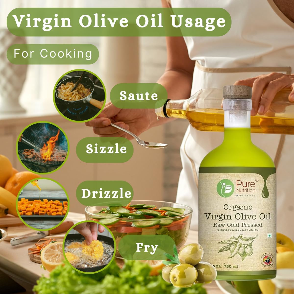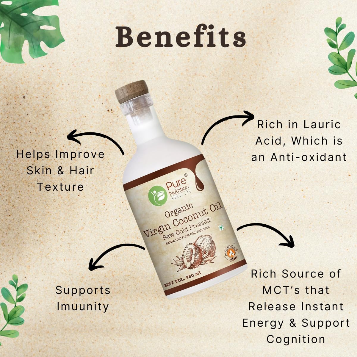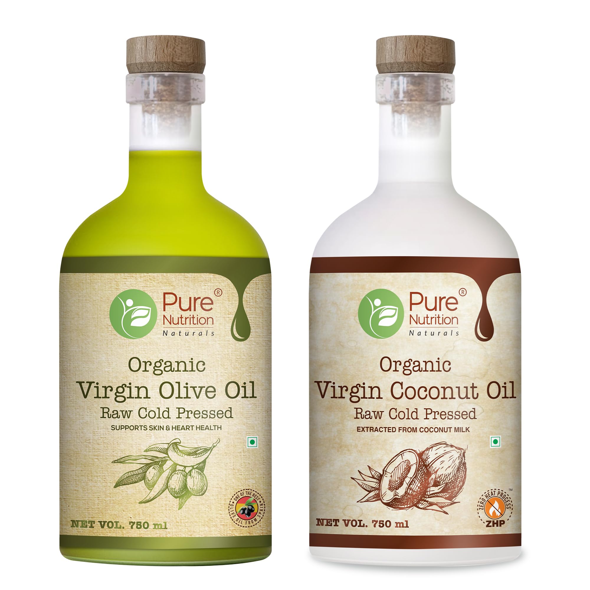 PURE NUTRITION Naturals Pressed Virgin Olive Oil is obtained from pure olives grown without using synthetic chemicor . Pressing ensures the retention of maximum nutrients. It contains monounsaturated fatty acids that help maintain good levels & supports health. The benefits of Olive oil for skin and hair are no less. Pure Nutrition -Pressed Virgin Olive Oil serves as a Naturals al moisturizer supports healthy hair & skin and can be used for massaging. PURE NUTRITION Naturals RAW PRESSED VIRGIN COCONUT OIL is made from fresh raw coconuts through a no-heat process to maintain its Naturals al properties and retain vital nutrients. It is rich in antiand anti-properties. Coconut oil for hair is a go-to option for many as it gives deep nourishment. Its application to the skin helps keep it hydrated. It is safe for use on as it does not include genetically modified ingredients and is devoid of harsh chemic