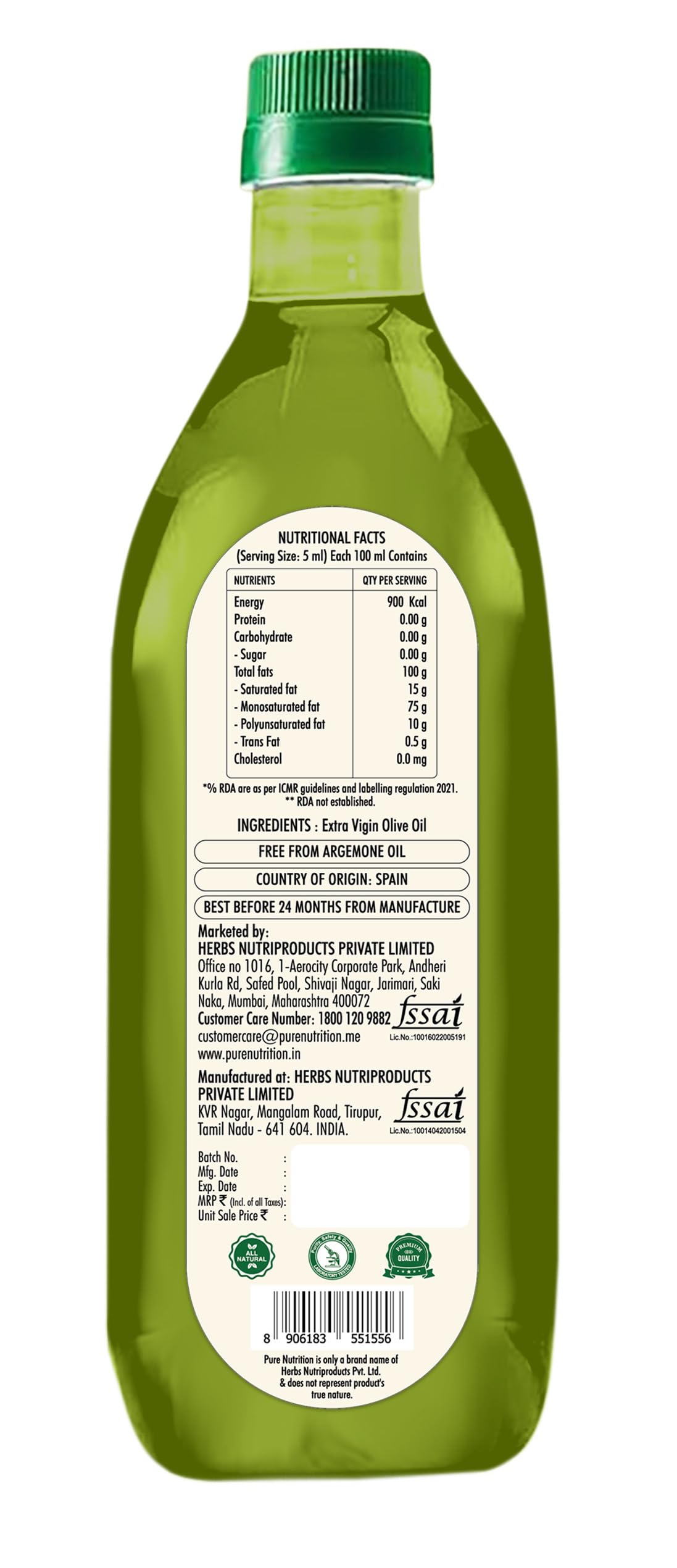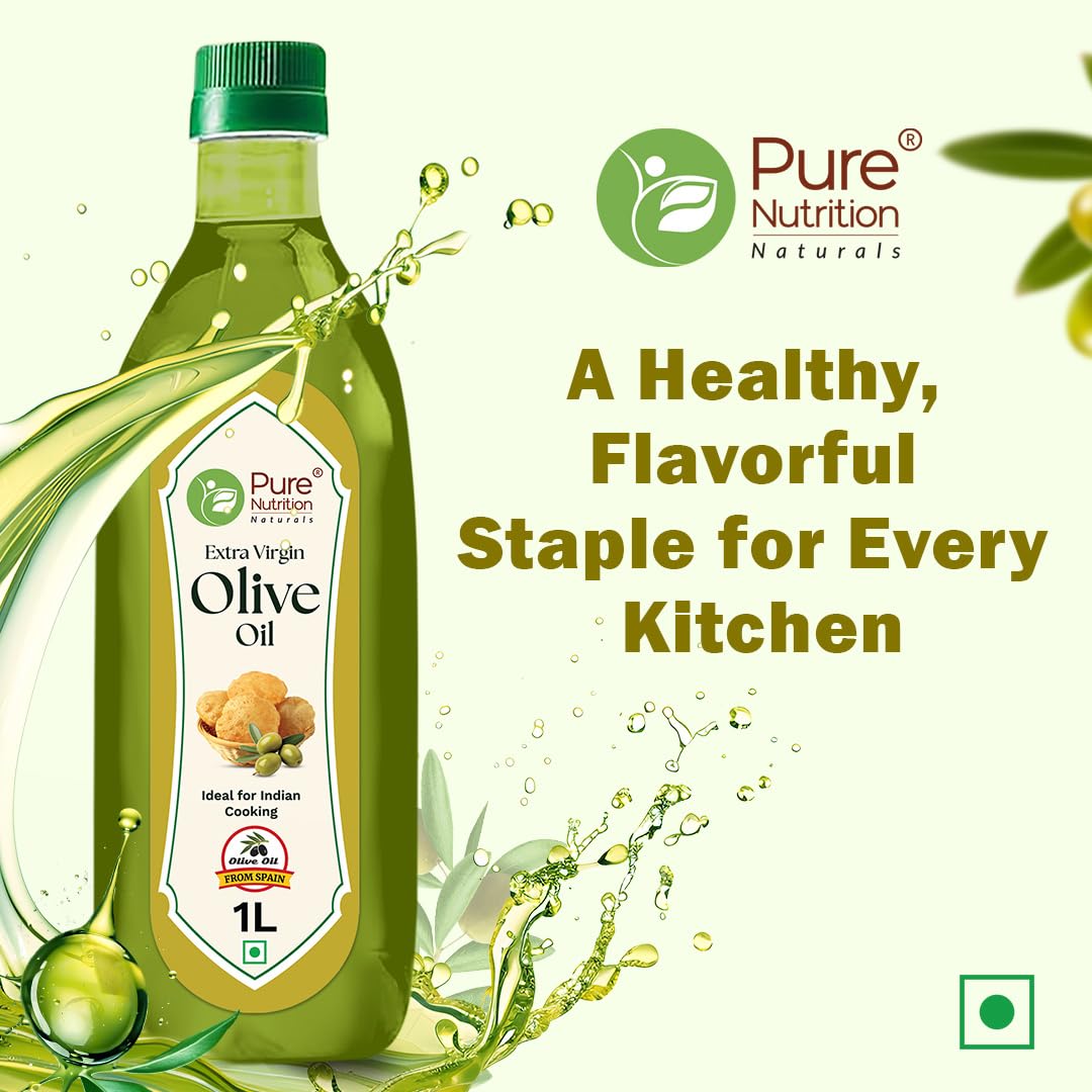 Elevate your culinary creations with Pure Nutrition Extra Virgin Olive Oil. This 100% pure and edible oil is perfect for Indian cooking dressings and garnishing adding a rich flavor to your dishes. Packed with health benefits it's also great for skin and hair care. Conveniently housed in a 1-liter pet bottle itâs a must-have for every kitchen!