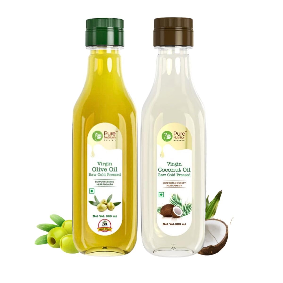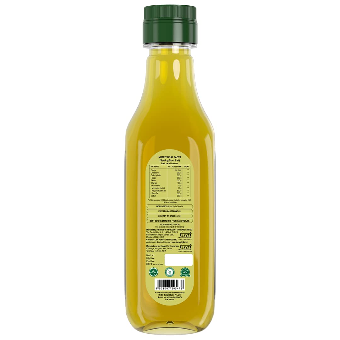 PURE NUTRITION Naturals Pressed Virgin Olive Oil is obtained from pure olives grown without using synthetic chemicor . Pressing ensures the retention of maximum nutrients. It contains monounsaturated fatty acids that help maintain good levels & supports health. The benefits of Olive oil for skin and hair are no less. Pure Nutrition -Pressed Virgin Olive Oil serves as a Naturals al moisturizer supports healthy hair & skin and can be used for massaging.