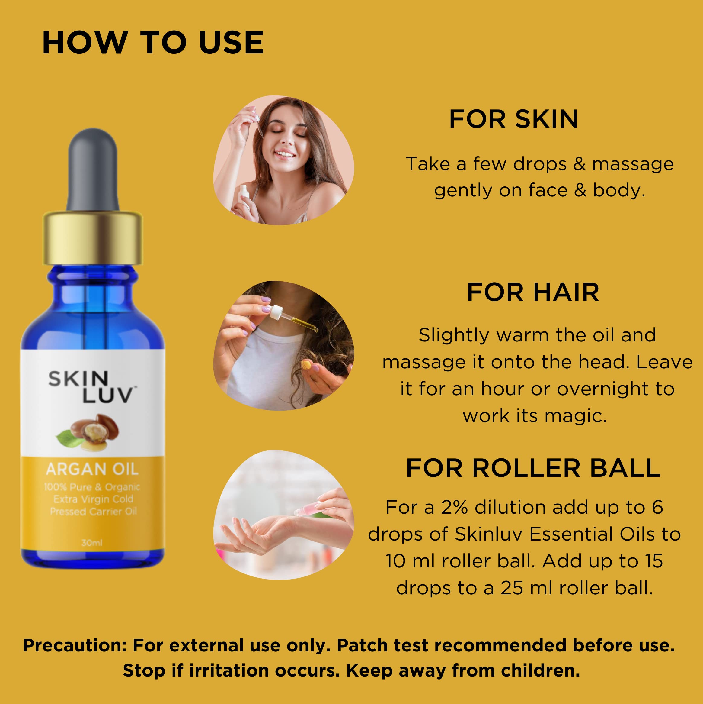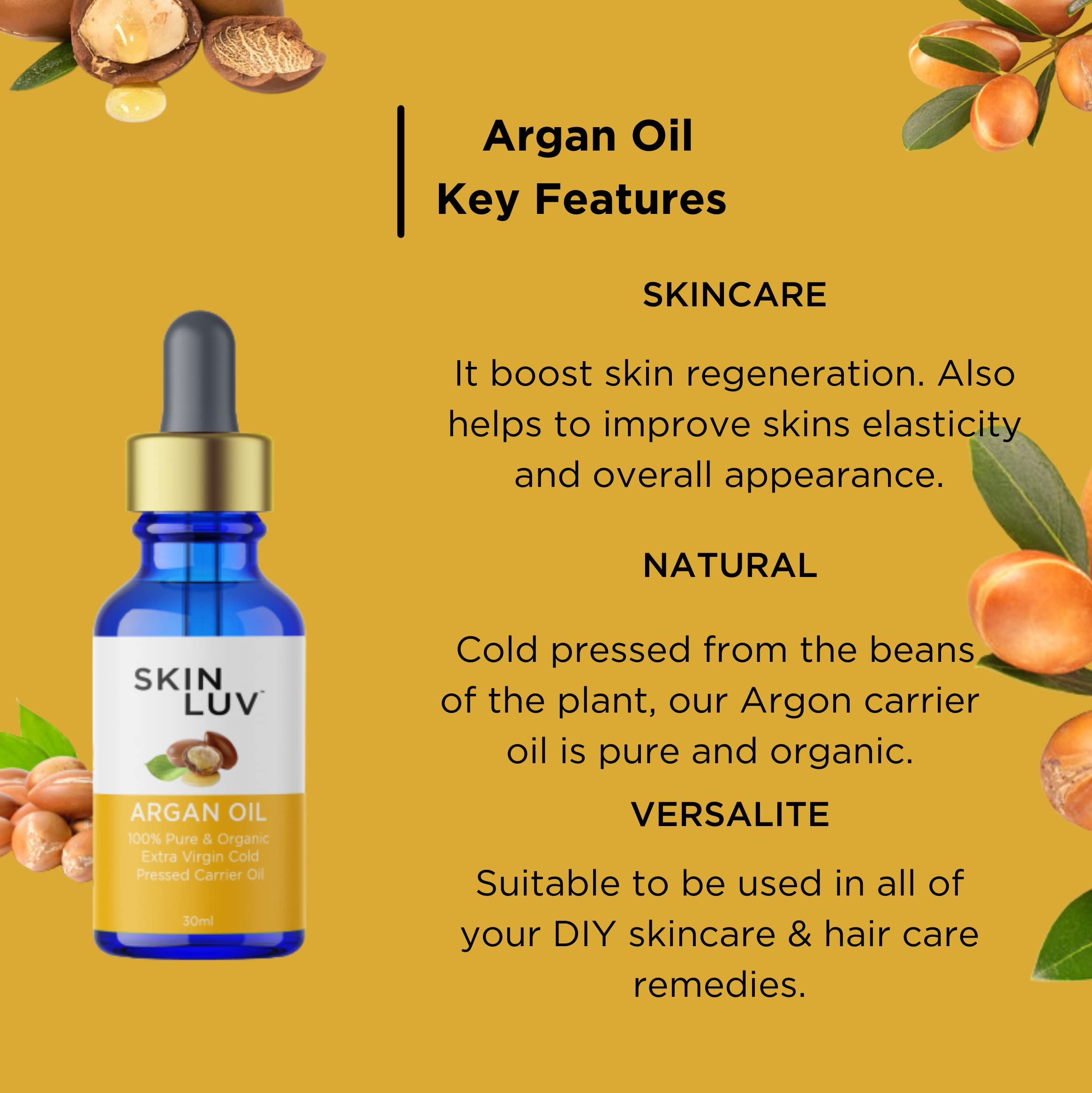 SKINLUV 100% Pure & Organic Extra Virgin Argan Oil Cold Pressed Carrier Oil | Hair Growth Oil | Argan Oil For Hair | Argan Oil For Skin | Hair Oil For Hair Growth | Face Oil 30 ml