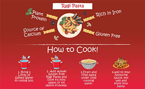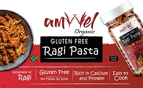 HomeGroceryCookingPasta & NoodlesAmwel Organic Gluten Free & Multigrain Ragi Pasta | Gourmet Instant Pasta | Fusilli Pasta | No Maida No Sooji | 50% Ragi | Rich in Calcium | 220g x 3 units