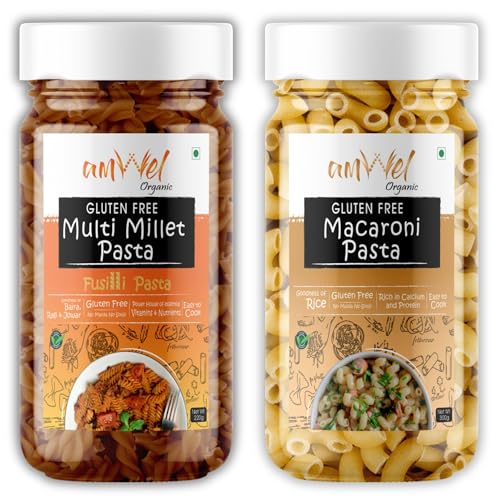 HomeGroceryCookingPasta & NoodlesAmwel Organic Gluten Free Multi Millet Pasta 220g + Rice Macaroni Pasta 300g | Fusilli & Macaroni Pasta | No Maida No Sooji | Power of Millets