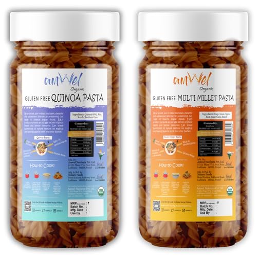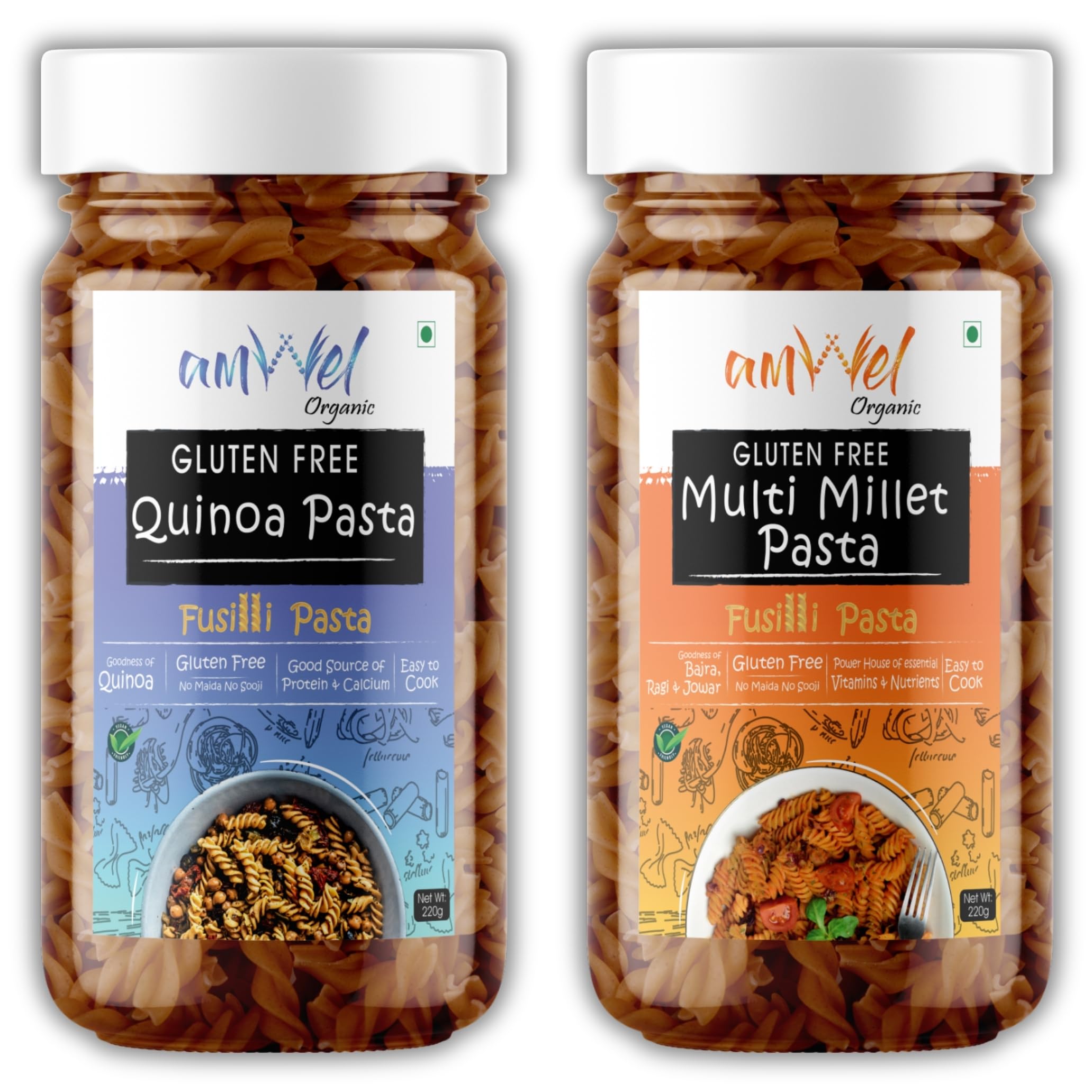 HomeGroceryCookingPasta & NoodlesAmwel Organic Gluten Free Quinoa Pasta + Multi Millet Pasta | Fusilli Pasta | 220g x 2 pc | No Maida No Sooji | Power of Millets
