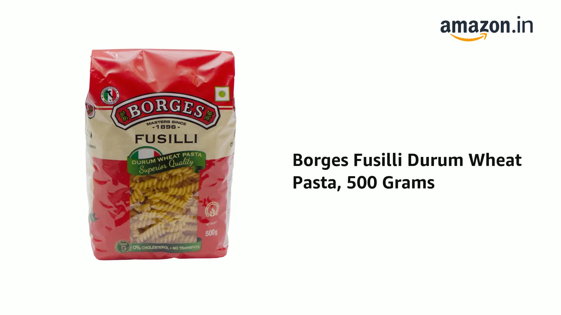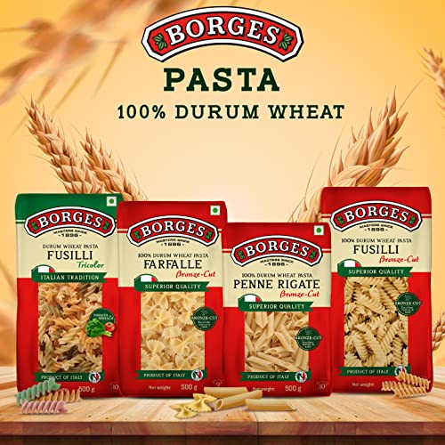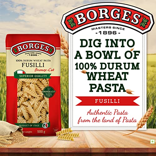 Product Description Borges is a Mediterranean food products company from Spain. They are one of the leading brands of olive oils worldwide. Their product range includes pastas vinegars olives and nuts along with a wide range of olive oils. From the Manufacturer FeaturesThe twisty fusilli pasta from Borges is a favourite for kids and elders alike and is made in Italy from the best quality durum wheat and other fresh ingredients. Invite some neighbours over for some rich red wine and serve them this delectable and healthy pasta hot from the pan. Crafted in Italy using 100% Durum Wheat Semolina which is rich in protein and contains no cholesterol & no Trans Fats. Besides being healthy it is easy to cook and fun to eat. UsageAs a savory mealSaladsSoupsview largerAbout the brandBorges belongs to the Mediterranean region; Mediterranean diet is considered to be one of the healthiest diets in the world and olive oil is an important ingredient in it. Borges launched its world famous olive oils in India with an aim to introduce Indian consumers to the fact that various variants of olive oil are relevant for their kitchens as well.World-renowned brand which is recognized as a leader in oils and vinegarsAn extensive international network; presence in over 105 countriesGuaranteed Quality and Traceability of our products