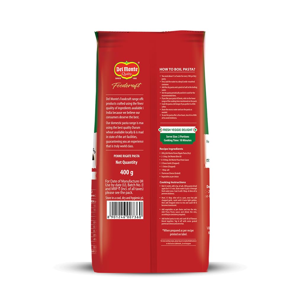 Del Monte Foodcraft Penne Rigate Pasta (100% Durum Wheat - No Maida)500 grams/ 400 grams