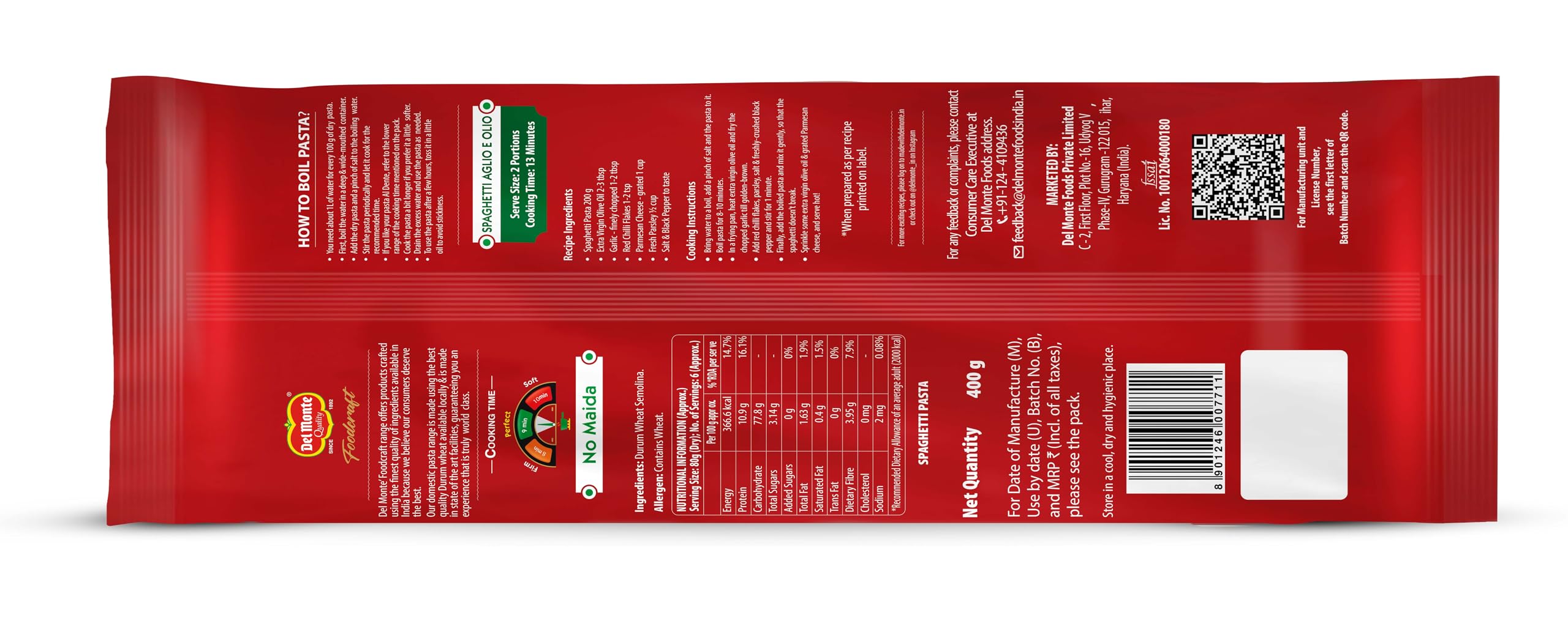 Foodcraft Spagehtti Pasta is made with high-quality Indian Durum wheat semolina rich in dietery protein and fibre. Manufactured at one of the largest and state-of-art pasta plants in India . It's exceptionally healthy & nutritious keeps you satiated for hours and is simply delicious. Relish this pasta with your favourite choice of sauce or toss it with veggies to make a healthy salad or mix in Del Monte's authentic Pizza Pasta Sauce for the delicious meal that tickles your taste buds.