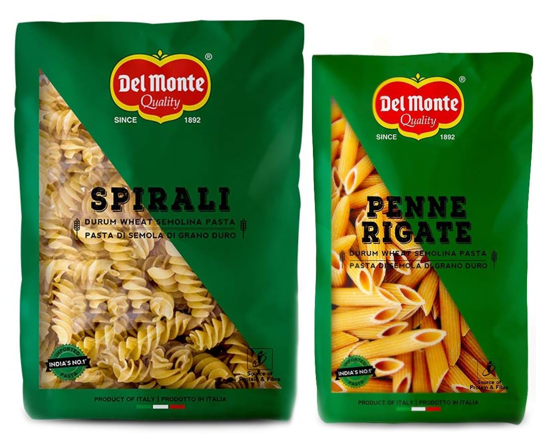 Del Monte Penne Pasta (Imported from Italy) 100% Durum Wheat Semolina 500gDel Monte Pasta is made with high-protein Durum wheat. From the homeland of Pasta - Italy made by experts who have perfected their art over generations. It's healthy keeps you satiated for hours and is simply delicious.Del Monte Spirali Pasta (Imported from Italy) 100% Durum Wheat Semolina 500 gramsDel Monte is the no. 1 Imported pasta brand in India (basis Nielsen retail audit 2015-16). Imported from one of the oldest and largest pasta manufacturers in Italy.